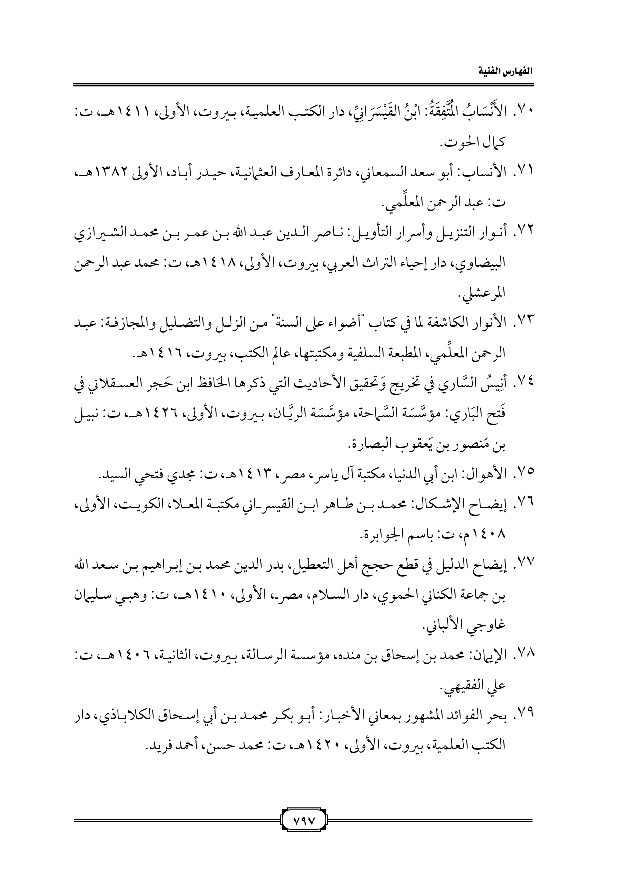 ٧١. الأنساب: أبو سعد السمعاني، دائرة المعارف العثمانية، حيدر أباد، الأولى ١٣٨٢ هـ، ت: عبد الرحمن المعلِّمي.