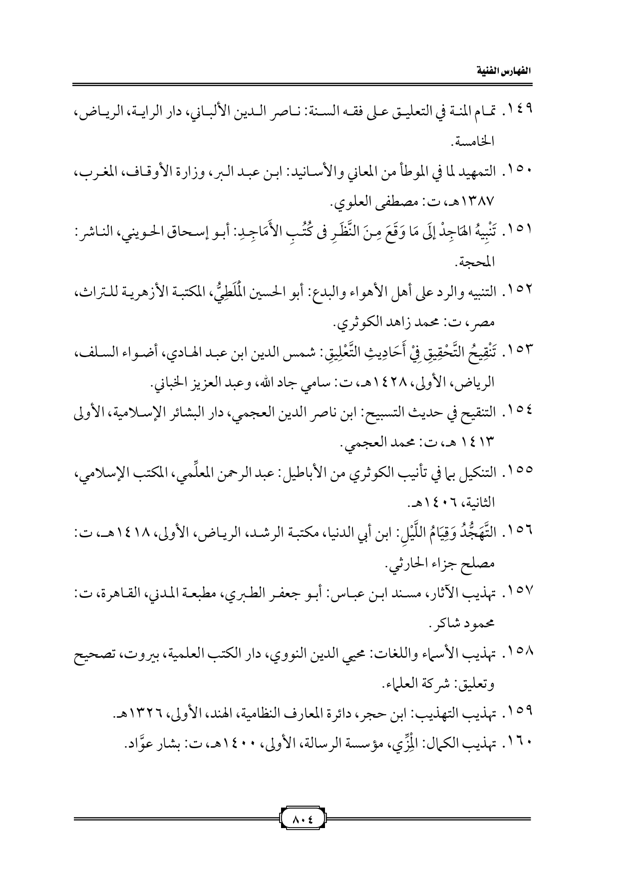 ١٥٥. التنكيل بما في تأنيب الكوثري من الأباطيل: عبد الرحمن المعلِّمي، المكتب الإسلامي، الثانية، ١٤٠٦ هـ.