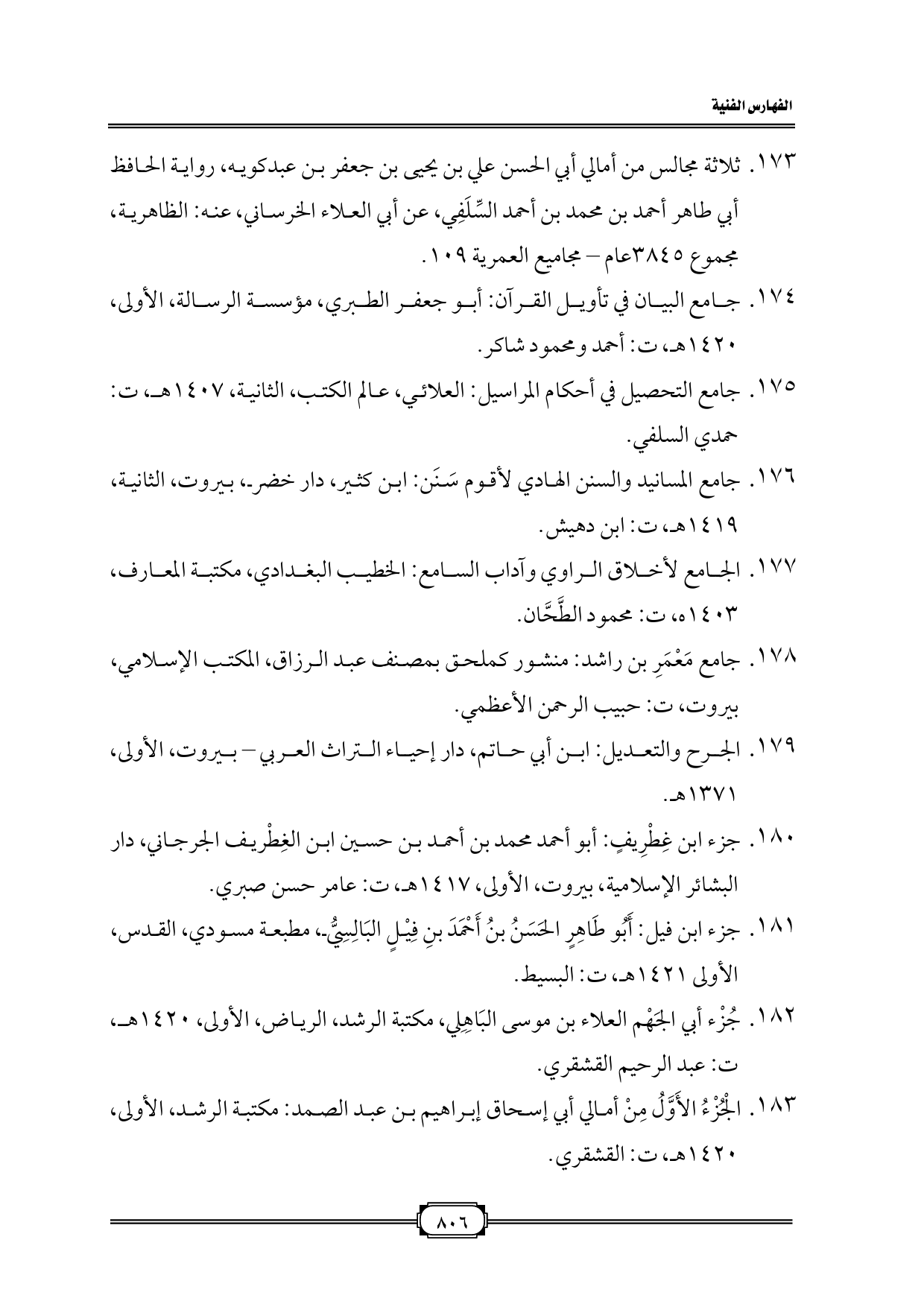 ١٧٥. جامع التحصيل في أحكام المراسيل: العلائي، عالم الكتب، الثانية، ١٤٠٧ هـ، ت: حمدي السلفي.