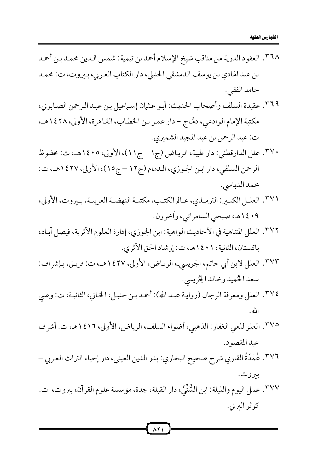 ٣٧٣. العلل لابن أبي حاتم، الجريسي، الرياض، الأولى، ١٤٢٧ هـ، ت: فريق، بإشراف: سعد الحُميد وخالد الجُريسي.