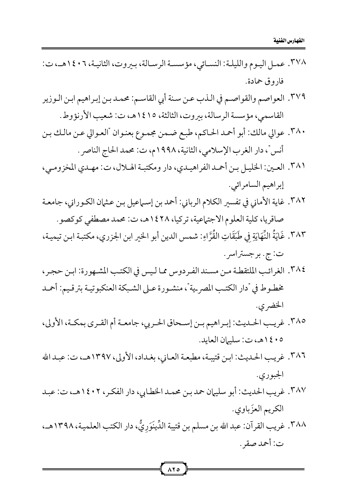 ٣٧٨. عمل اليوم والليلة: النسائي، مؤسسة الرسالة، بيروت، الثانية، ١٤٠٦ هـ، ت: فاروق حمادة.