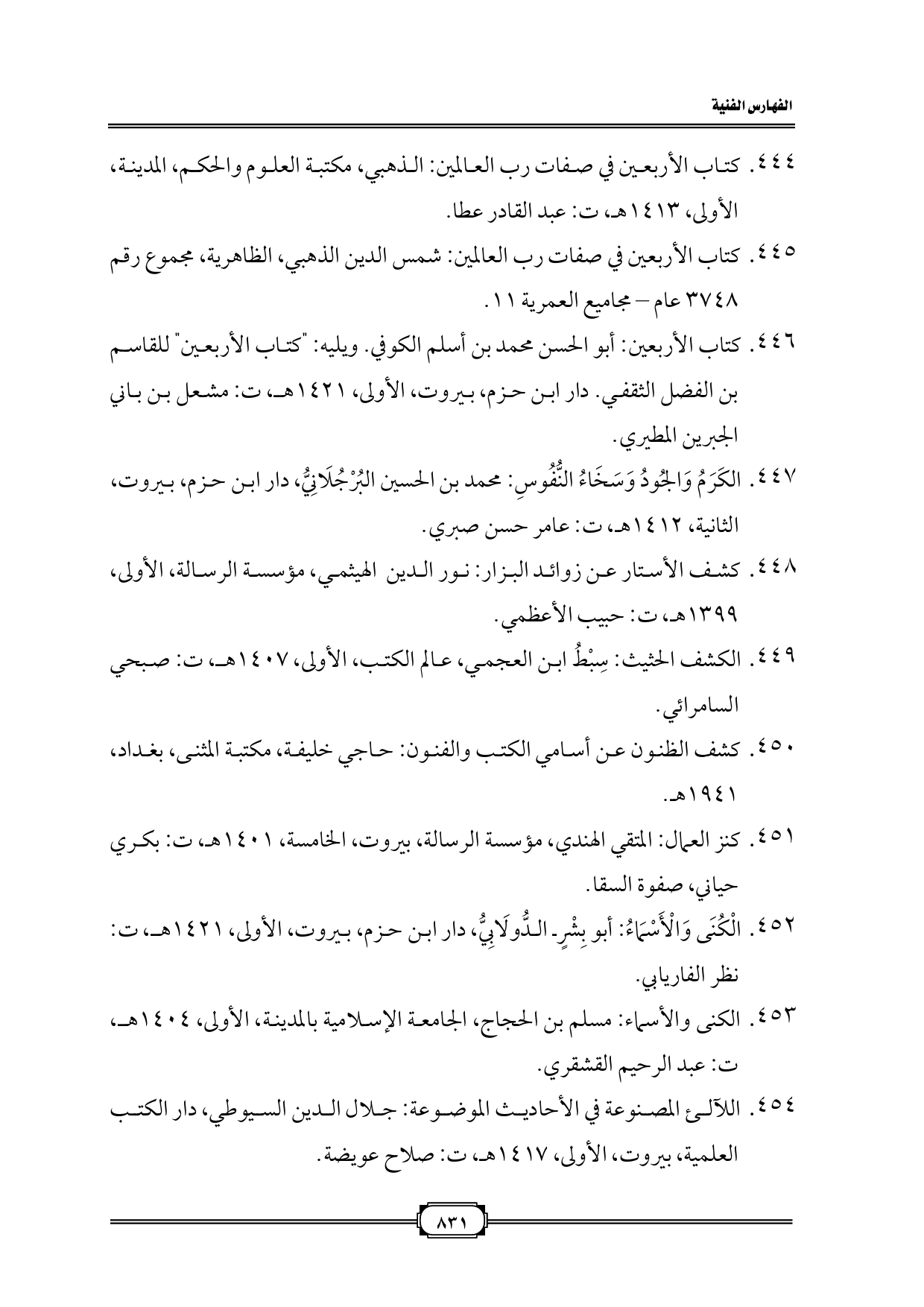 ٤٤٤. كتاب الأربعين في صفات رب العالمين: الذهبي، مكتبة العلوم والحكم، المدينة، الأولى، ١٤١٣ هـ، ت: عبد القادر عطا.