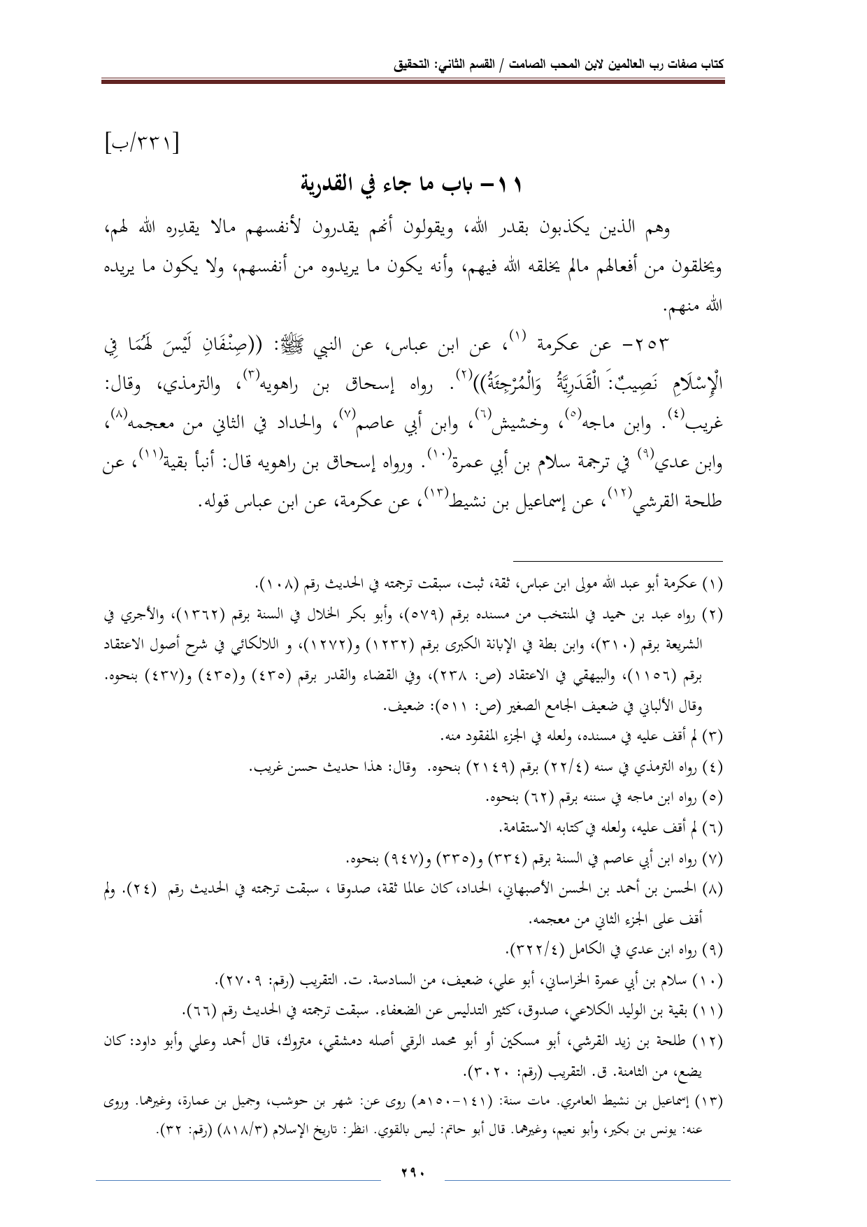 ١١ - باب ما جاء في القدرية