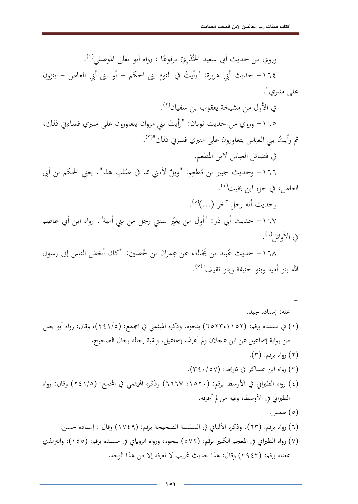 ١٦٦ - وحديث جبير بن مُطعِم: "ويلٌ لأمتي مما في صُلبِ هذا". يعني الحكم بن أبي العاص، في جزء ابن بخيت (¬٤).