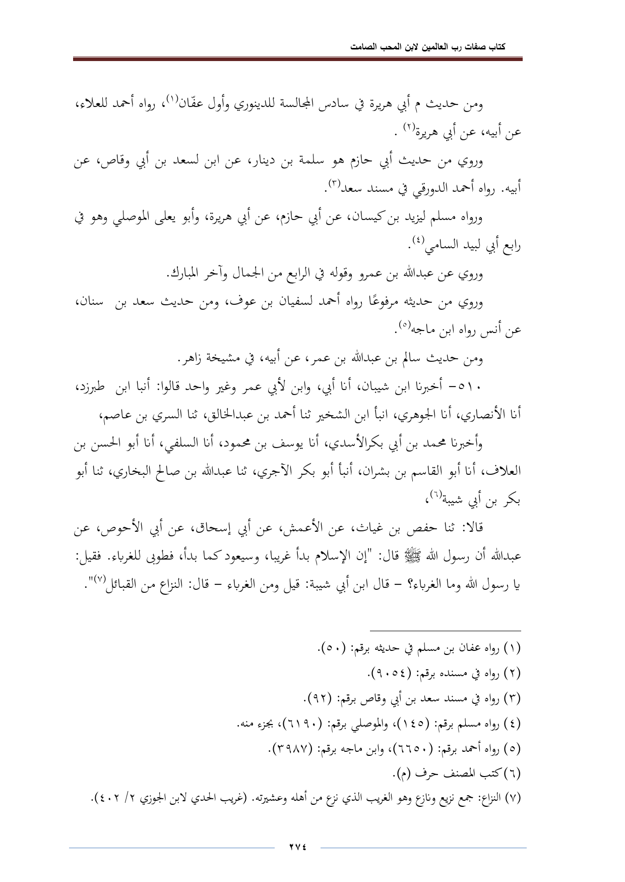 (¬٥) رواه أحور برقم: (٦٦٥٠)، وابن ماجة برقم: (٣٩٨٧).