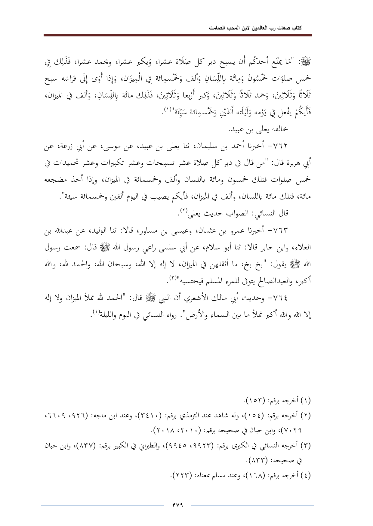 (¬٣) أخرجه النسائي في الكبرى برقم: (٩٩٢٣، ٩٩٤٥)، والطبراني في الكبير برقم: (٨٣٧)، وأبن حبان في صحيحه: (٨٣٣).