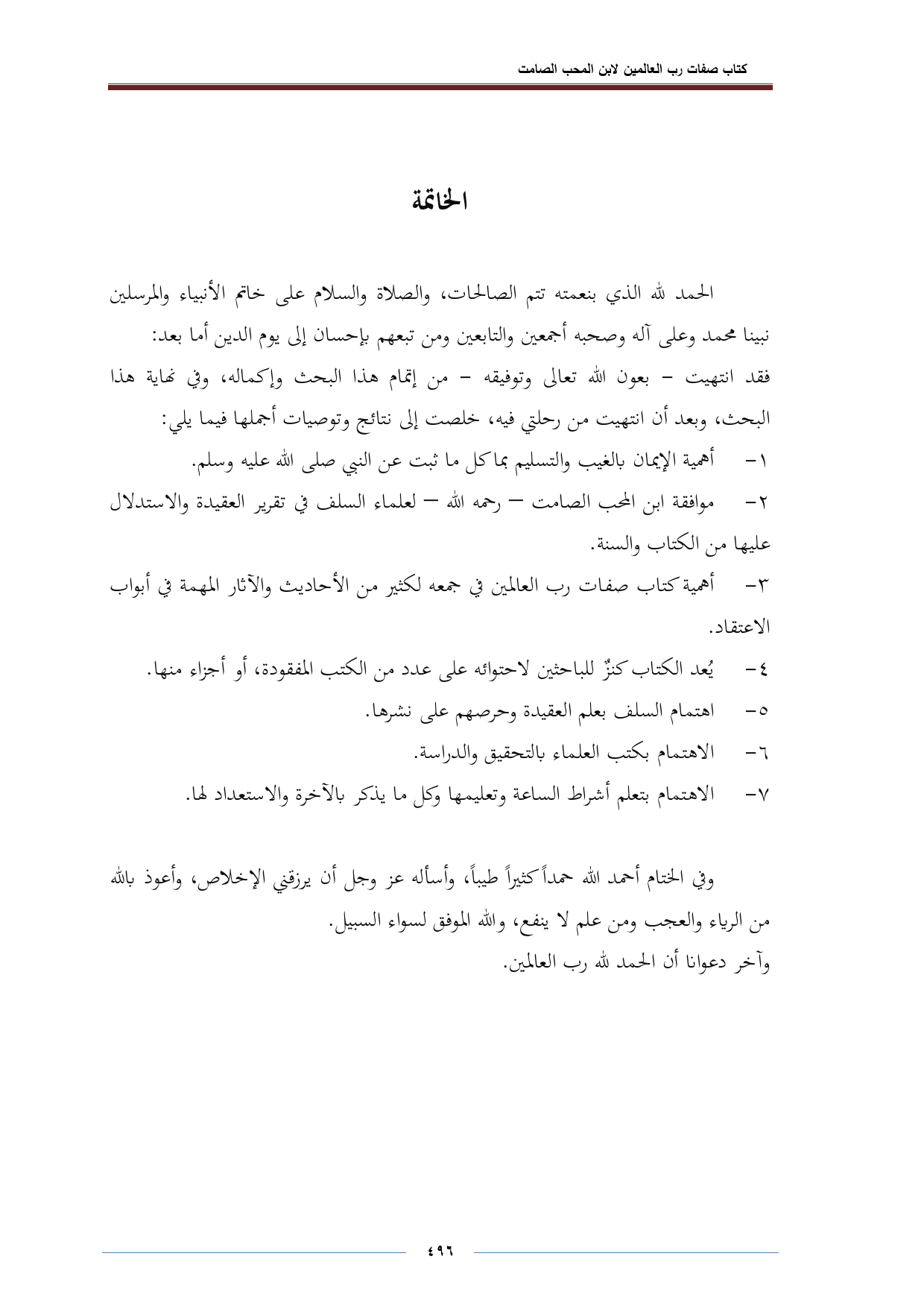 وفي الختام أحمد الله حمداً كثيراً طيباً، وأسأله عز وجل أن يرزقني الإخلاص، وأعوذ بالله من الرياء والعجب ومن علم لا ينفع، والله الموفق لسواء السبيل.