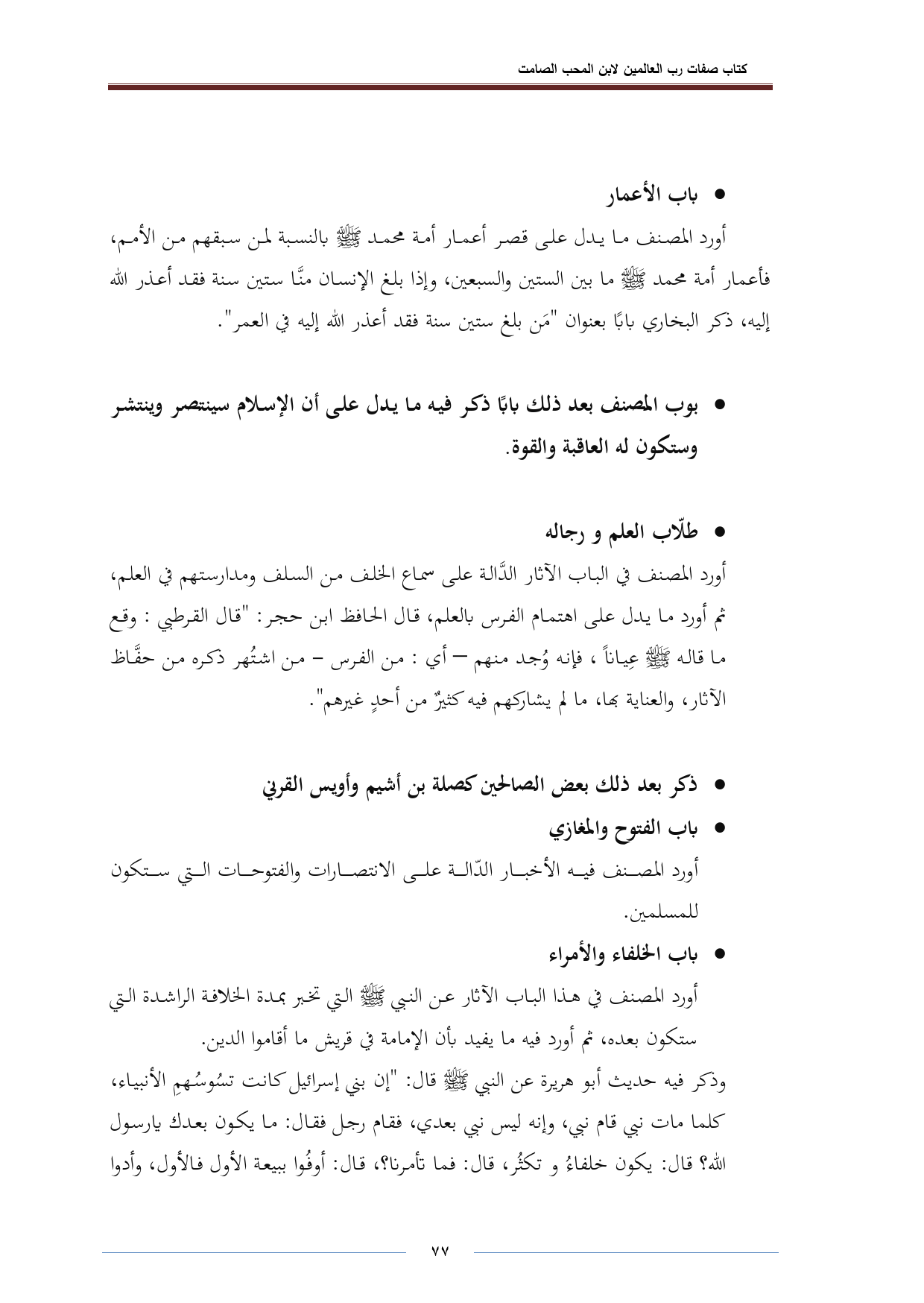 أورد المصنف فيه الأخبار الدَّالة على الانتصارات والفتوحات التي ستكون للمسلمين.