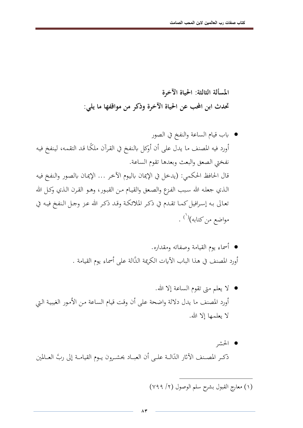 تحدث ابن المحب عن الحياة الآخرة وذكر من مواقفها ما يلي: