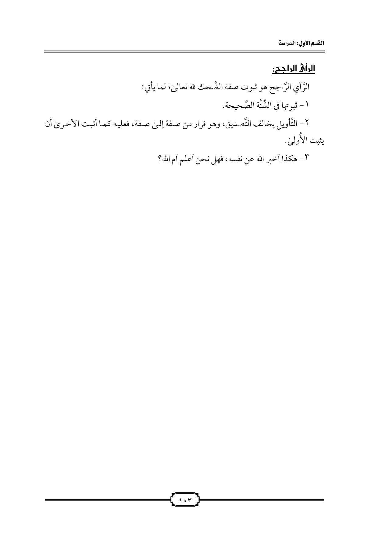 الرَّأي الرَّاجح هو ثبوت صفة الضَّحك لله تعالى؛ لما يأتي: