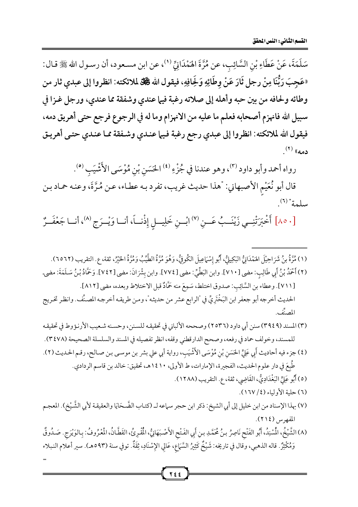 (¬7) بهذا الإسناد من ابن خليل إلى أبي الشيخ: ذكر ابن حجر سماعه لـ (كتاب الضَّحَايَا والعقيقة لأبي الشَّيْخ). المعجم المفهرس (214).