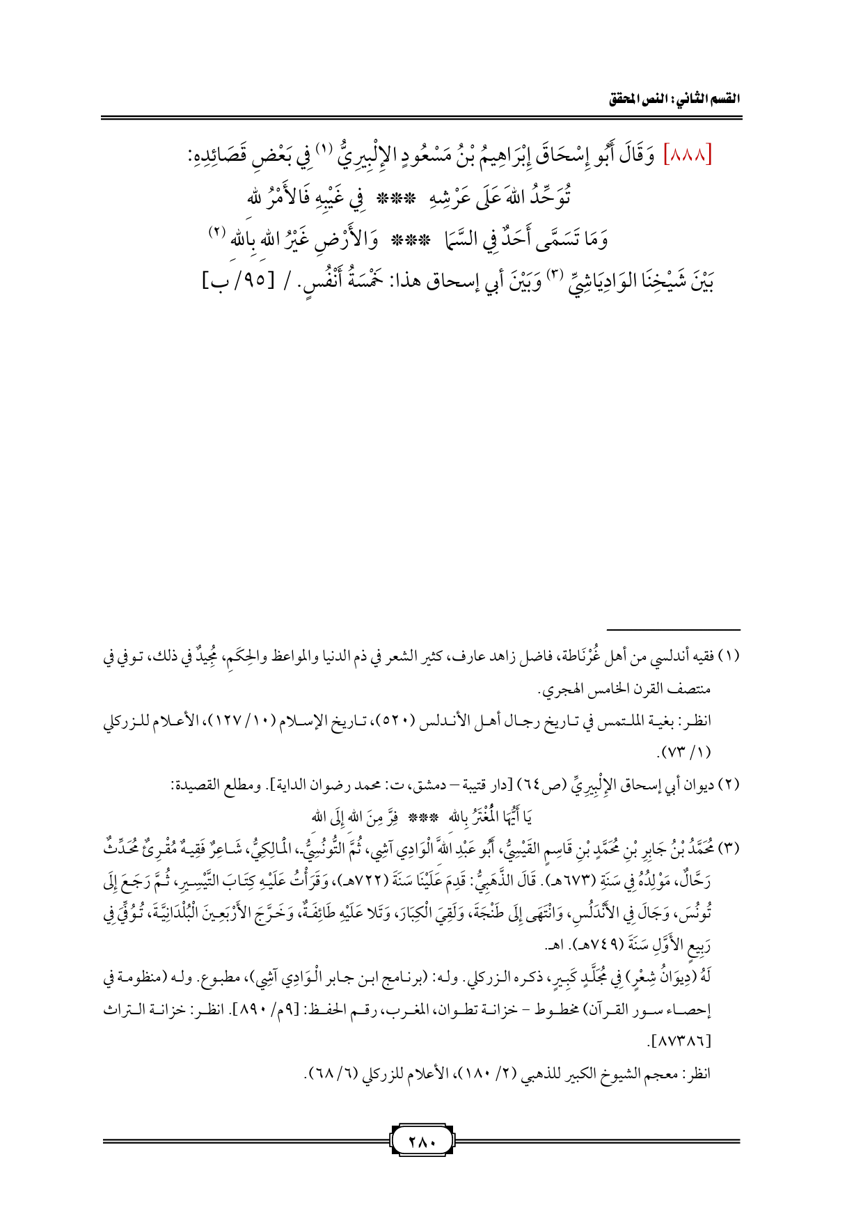 [888] وَقَالَ أَبُو إِسْحَاقَ إِبْرَاهِيمُ بْنُ مَسْعُودٍ الإِلْبِيرِيُّ (¬1) فِي بَعْضِ قَصَائِدِهِ: