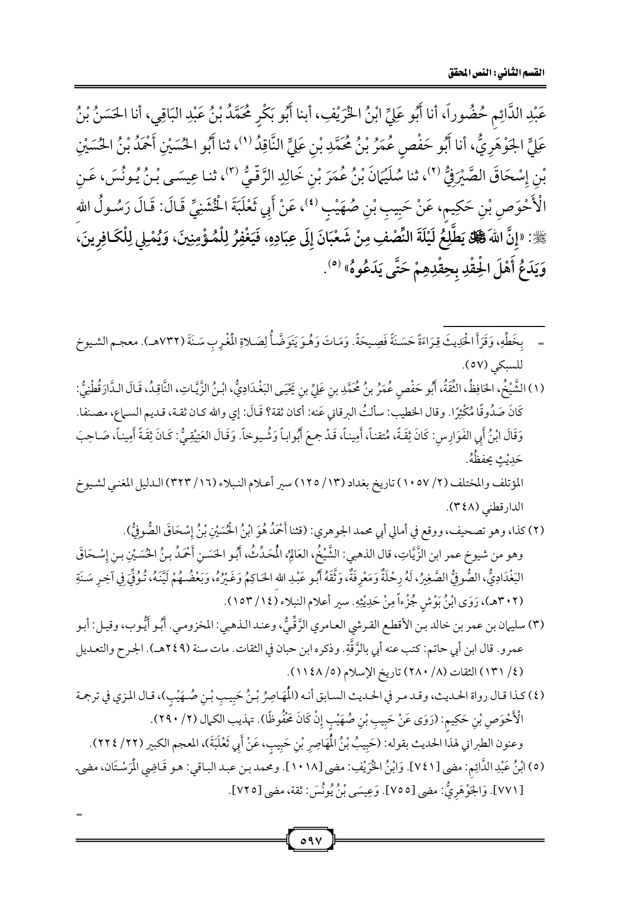 (¬5) ابْنُ عَبْدِ الدَّائِمِ: مضى [741]. وَابْنُ الخُرَيْفِ: مضى [1018]. ومحمد بن عبد الباقي: هو قَاضِي الْمَرَسْتَان، مضى [771]. وَالجَوْهَرِيُّ: مضى [755]. وَعِيسَى بْنُ يُونُسَ: ثقة، مضى [725].