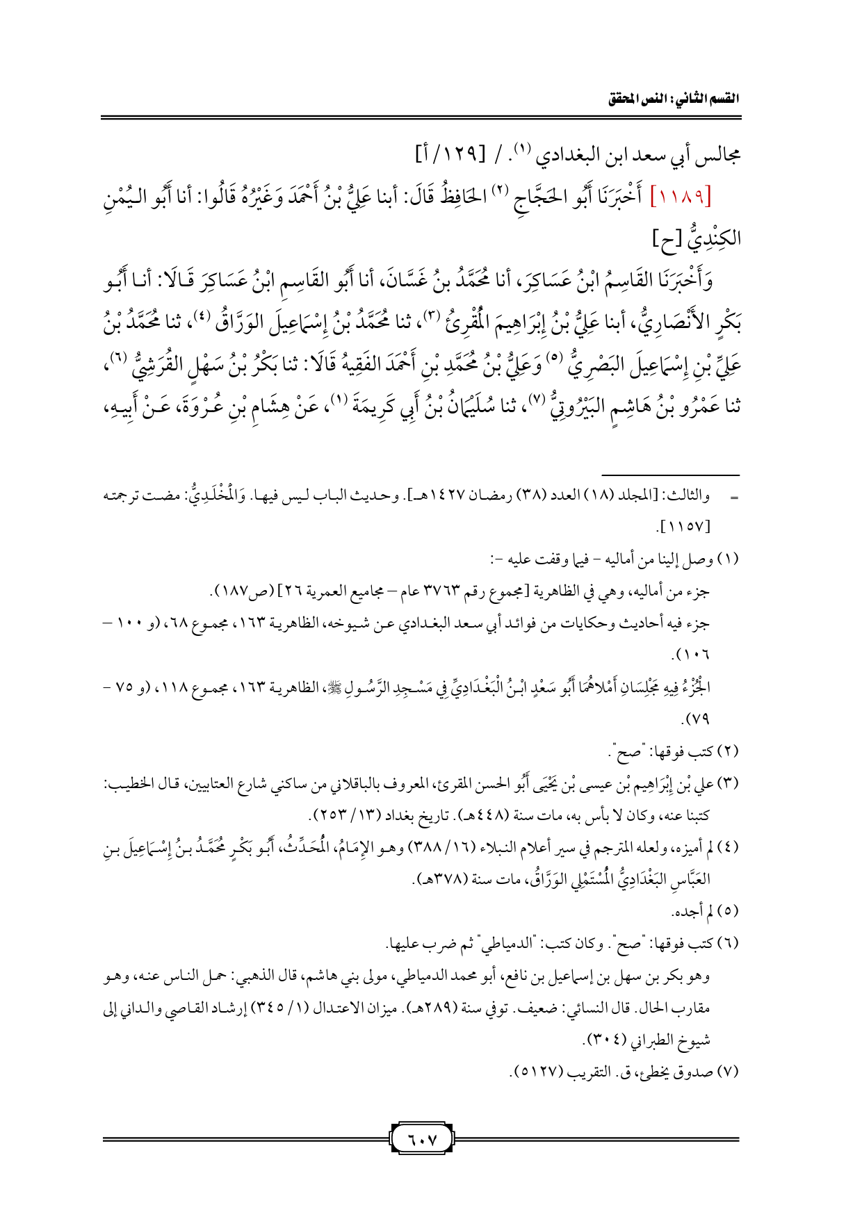 الْجُزْءُ فِيهِ مَجْلِسَانِ أَمْلاهُمَا أَبُو سَعْدٍ ابْنُ الْبَغْدَادِيِّ فِي مَسْجِدِ الرَّسُولِ - صلى الله عليه وسلم -، الظاهرية 163، مجموع 118، (و 75 - 79).