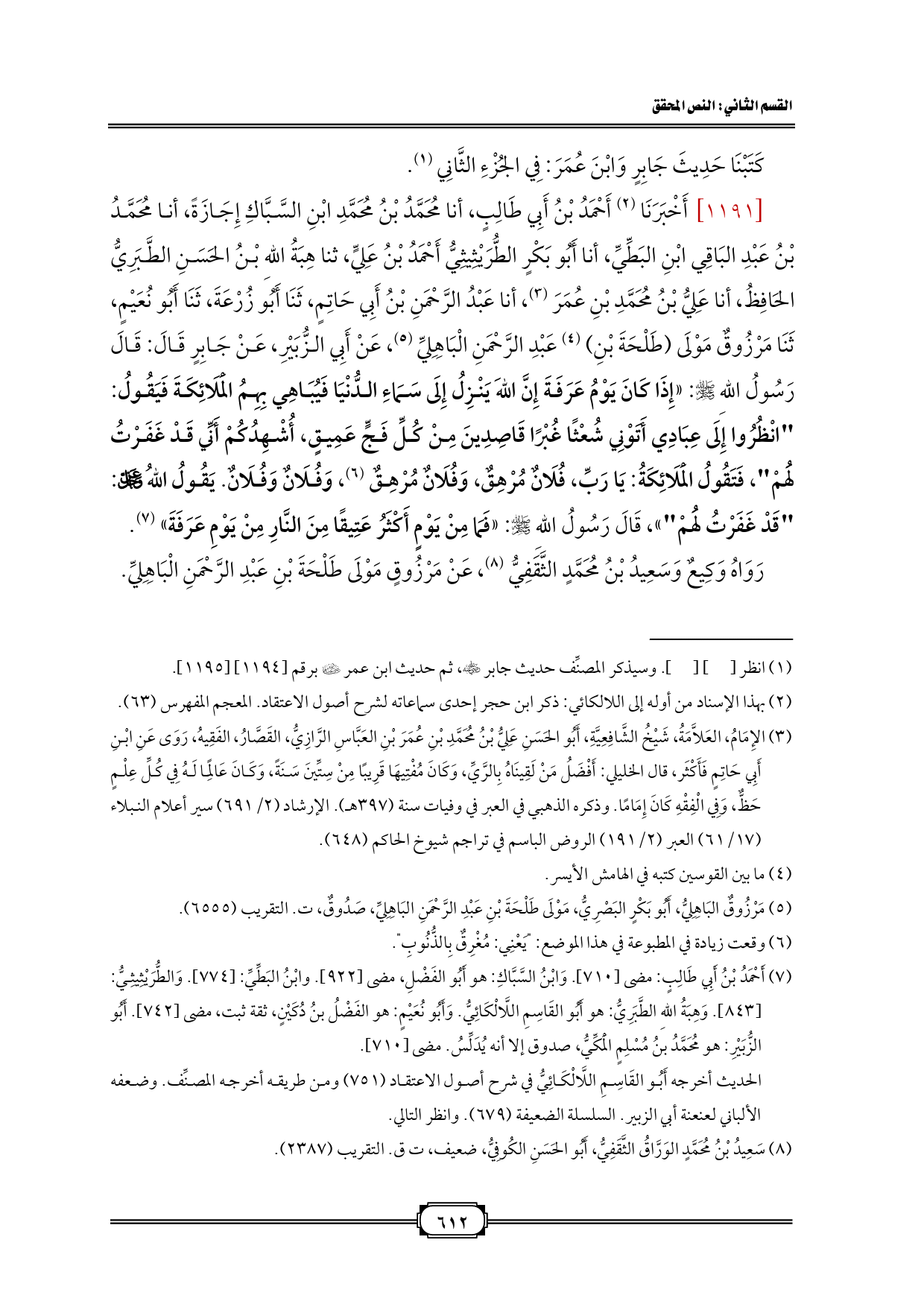 (¬2) بهذا الإسناد من أوله إلى اللالكائي: ذكر ابن حجر إحدى سماعاته لشرح أصول الاعتقاد. المعجم المفهرس (63).