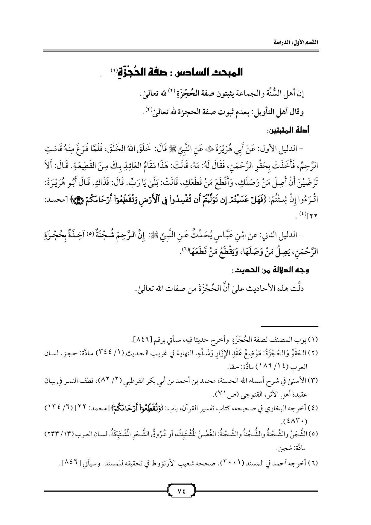 المبحث السادس: صفة الحُجْزَةِ (¬1)