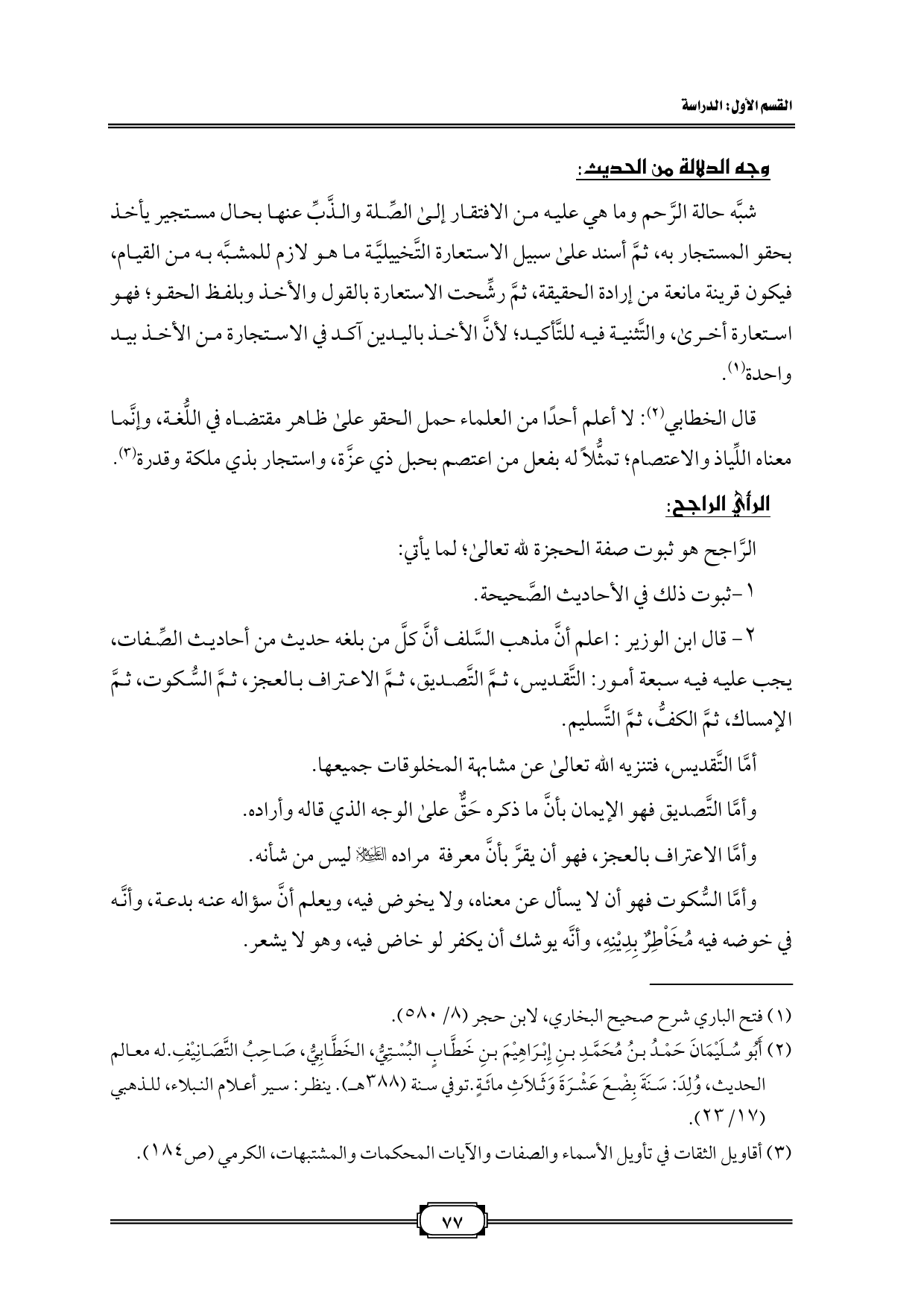 (¬3) أقاويل الثقات في تأويل الأسماء والصفات والآيات المحكمات والمشتبهات، الكرمي (ص 184).