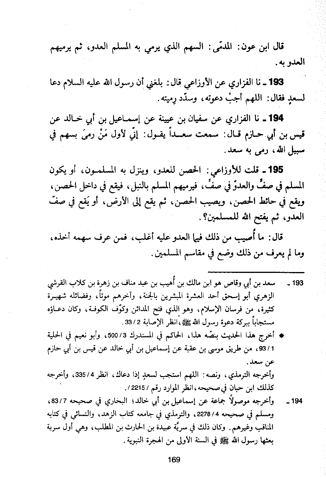 193 - نا الْفَزَارِيُّ، عَنِ الْأَوْزَاعِيِّ، قَالَ: بَلَغَنِي أَنَّ رَسُولَ اللَّهِ عَلَيْهِ السَّلَامُ دَعَا لِسَعْدٍ فَقَالَ: «§اللَّهُمَّ أَجِبْ دَعْوَتَهُ، وَسَدِّدْ رَمَيْتَهُ»