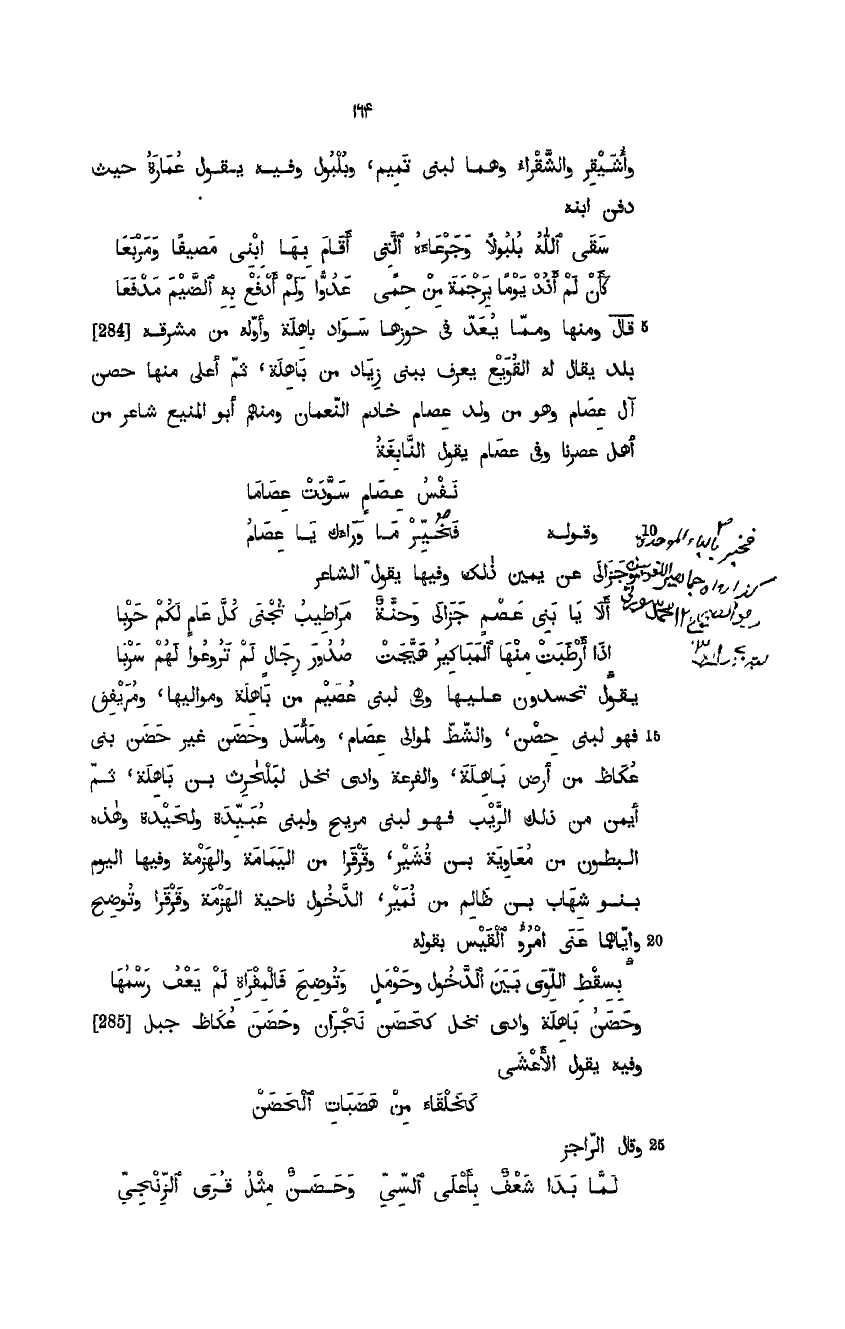 قال ومنها ومما يعد حوزها سواد باهلة وأوله من مشرقه بلد يقال له القويع يعرف ببني زياد من باهلة، ثم أعلى منه حصن آل عصام وهو من ولد عصام خادم النعمان، ومنهم أبو المنيع شاعر من أهل عصرنا. وفي عصام يقول النابغة: