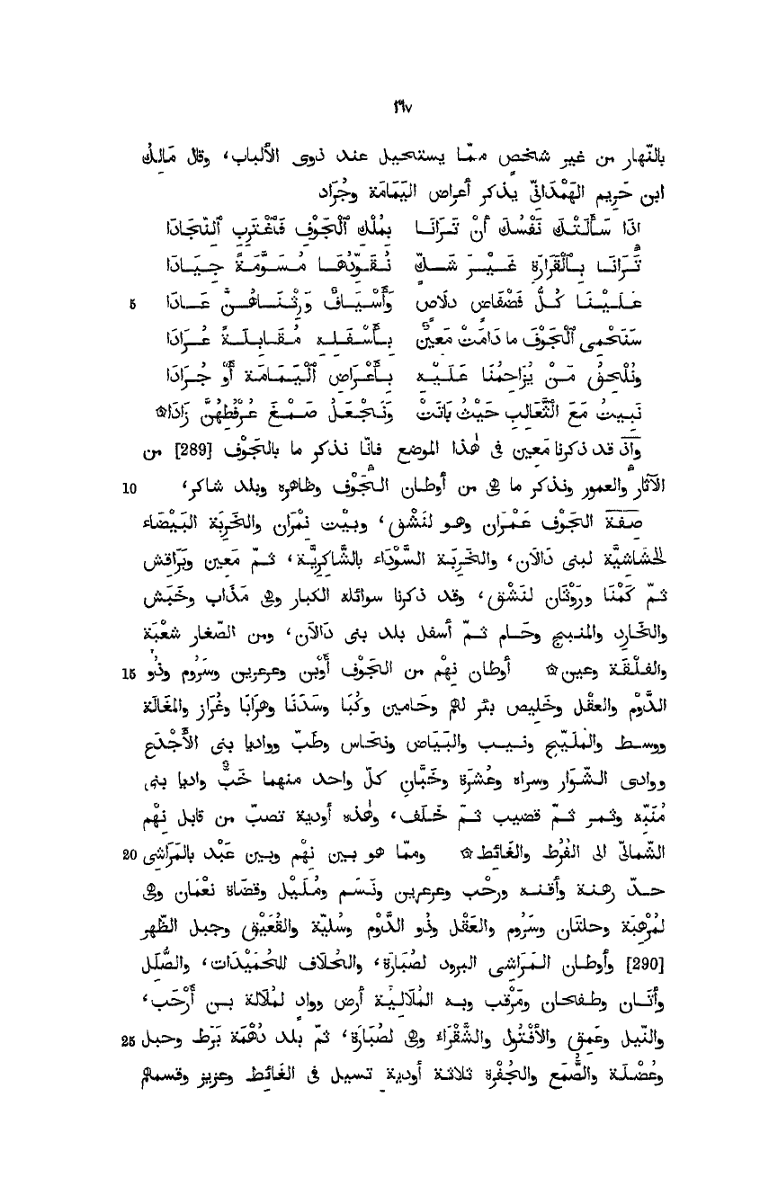 بالنهار من غير شخص مما يستحيل عند ذوي الألباب، وقال مالك بن حريم الهمداني يذكر إعراض اليمامة وجراد: