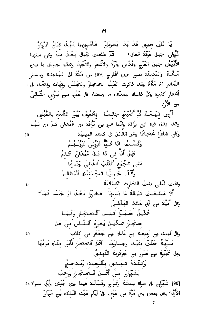 غزوان جبل عرفة العالي، ثم طلعت الجبال بعد منه وكان منها الأبيض جبل العرج وقدس وآرة والأشعر والأجرد وهذه جبال ما بين مكة والمدينة عن يمين الخارج من مكة إلى المدينة ويسار الصادر إلى مكة وقد ذكرت العرب الحجاز والجلس وتهامة ونجد في أشعار كثيرة وكل ذلك يصدق ما وصفنا. قال عمرو براق الثُّمالي من الأزد: