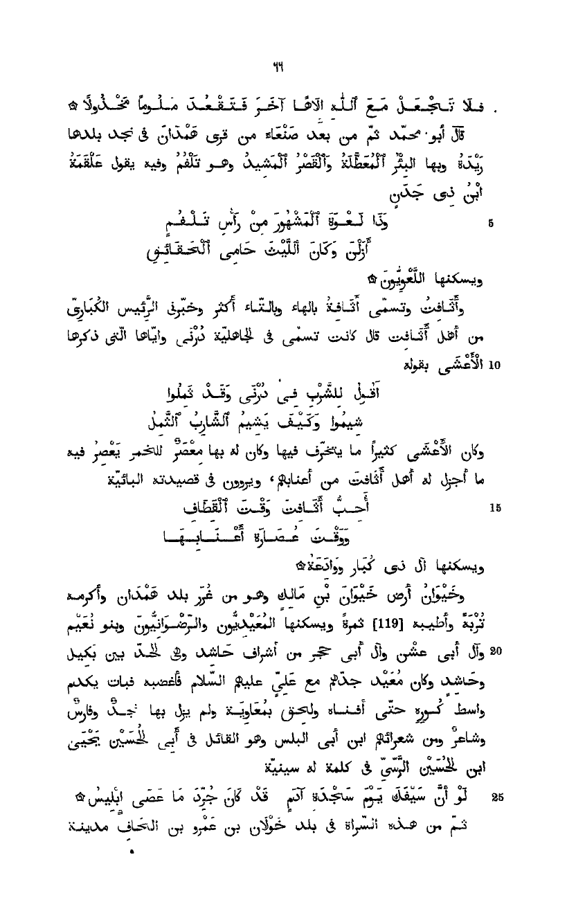 قال أبو محمد: ثم من بعد صنعاء من قرى همدان في نجدها بلدها ريدة وبها البئر المعطلة والقصر المشيد وهو تلفم وفيه يقول علقمة بن ذي جدن: