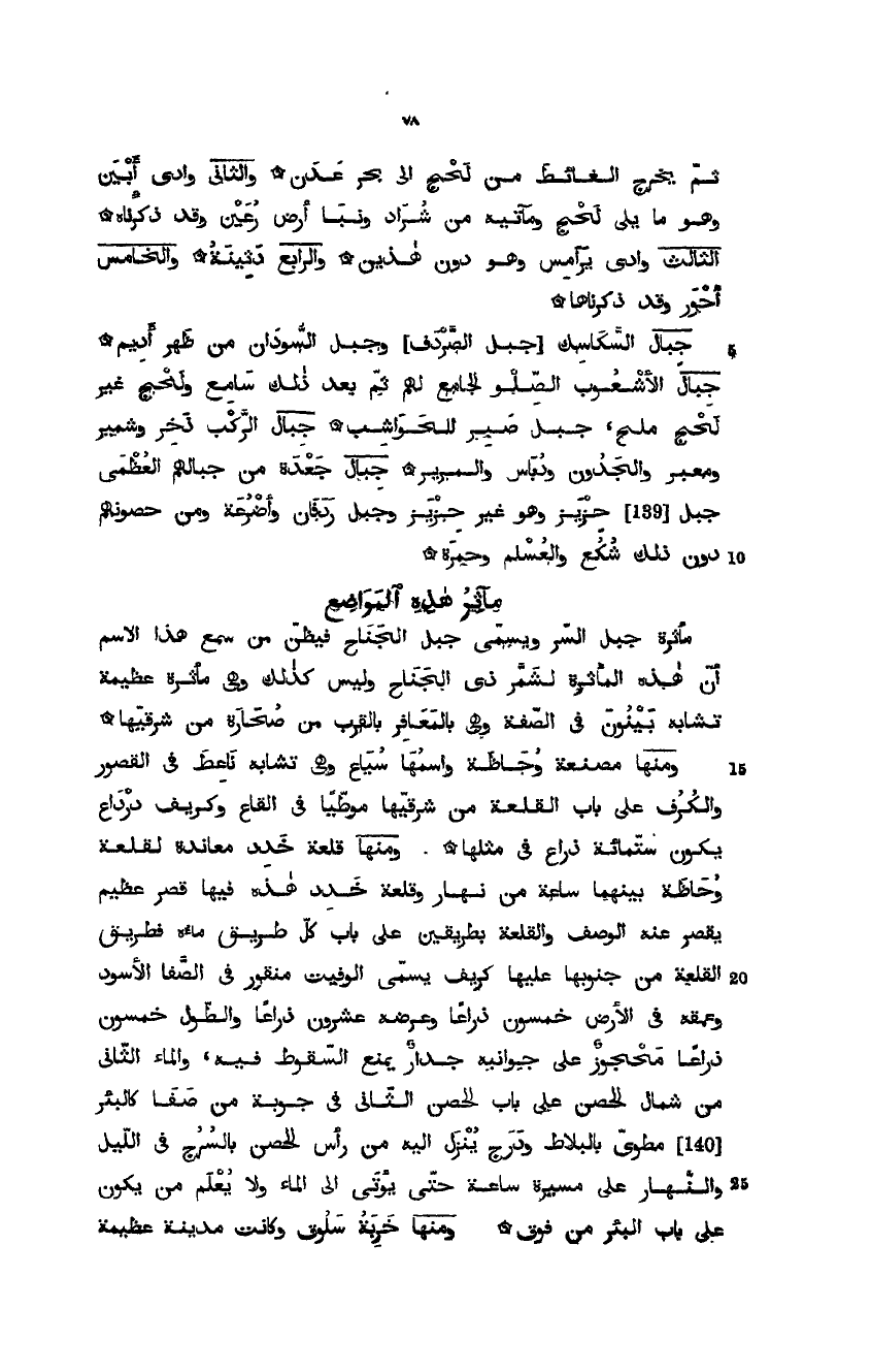 جبال السكاسك: جبل الصرَّدف وجبل السودان من ظهر أديم. جبال الأشعوب: الصِّلو الجامع لهم ثم بعد ذلك سامع ولحج وغير لحج ملح، جبل صبر للحواشب جبال الرَّكب: ذخر وشمير ومعبر والجدون ودباس والمرير جبال جعدة: من جبالهم العظمى جبل حرير وهو غير حزيز وجبل ردفان وضرعة ومن حصونهم دون ذلك شكع والعسلم وحمرة.
