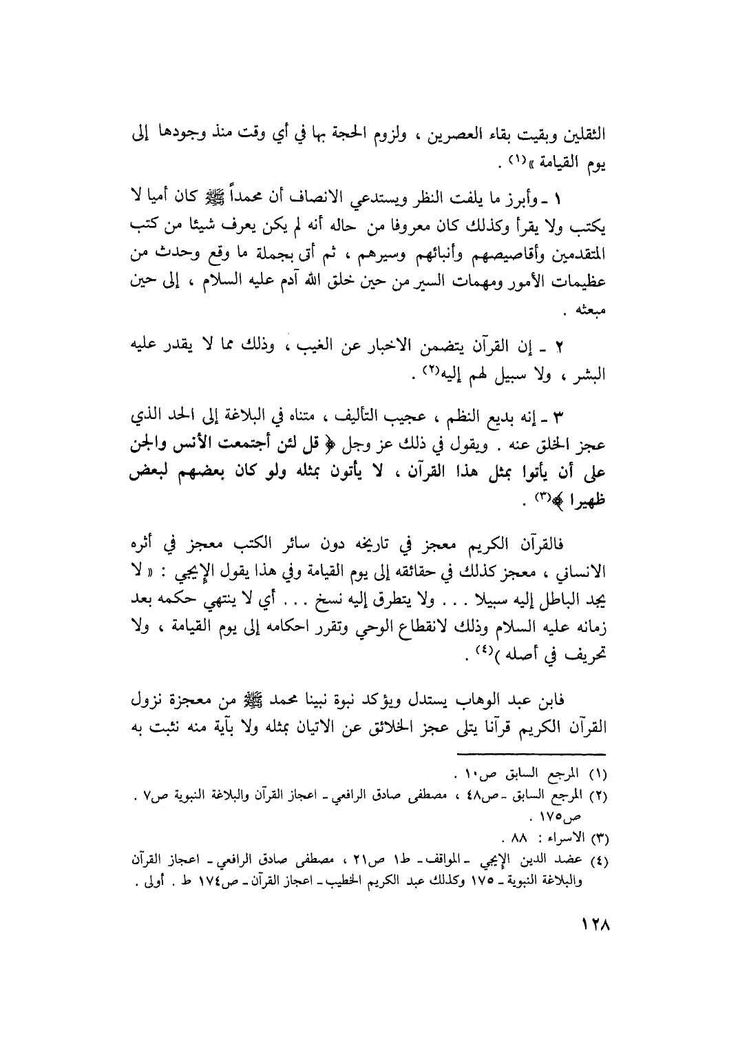 (4) عضد الدين الإيجي ـ المواقف ـ ط1 ص21، مصطفى صادق الرافعي ـ إعجاز القران والبلاغة النبوية ـ 175 وكذلك عبد الكريم الخطيب ـ اعجاز القرآن ـ ص174 ط. أولى