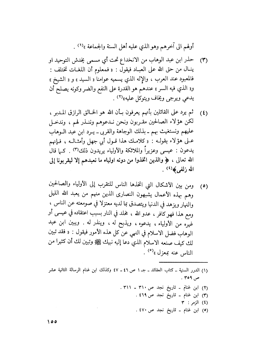 (1) الدرر السنية ـ كتاب العقائد ـ جـ 1 ص46 ـ 47 وكذلك ابن غنام الرسالة الثانية عشر ص359