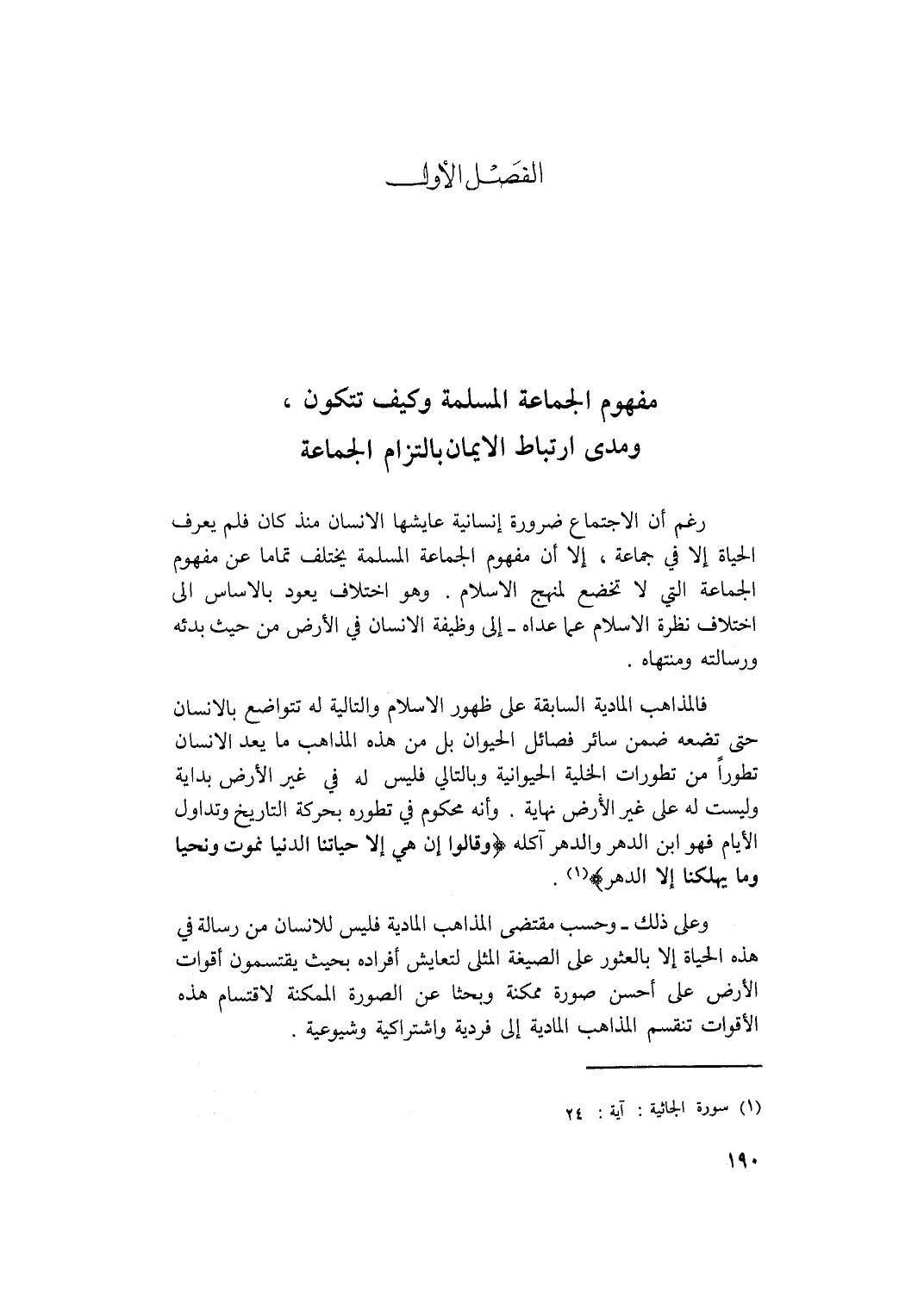 الفصل الأول: مفهوم الجماعة المسلمة وكيف تتكون، ومدى ارتباط الإيمان بالتزام الجماعة