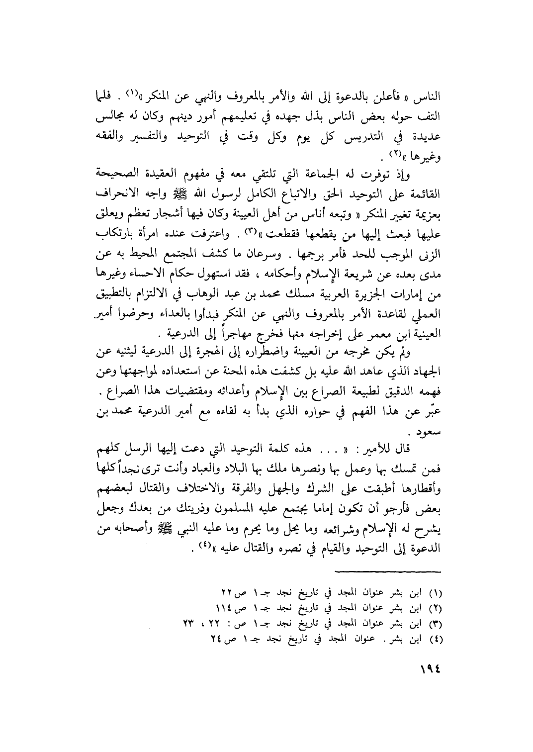 (4) ابن بشر عنوان المجد في تاريخ نجد جـ 1 ص24