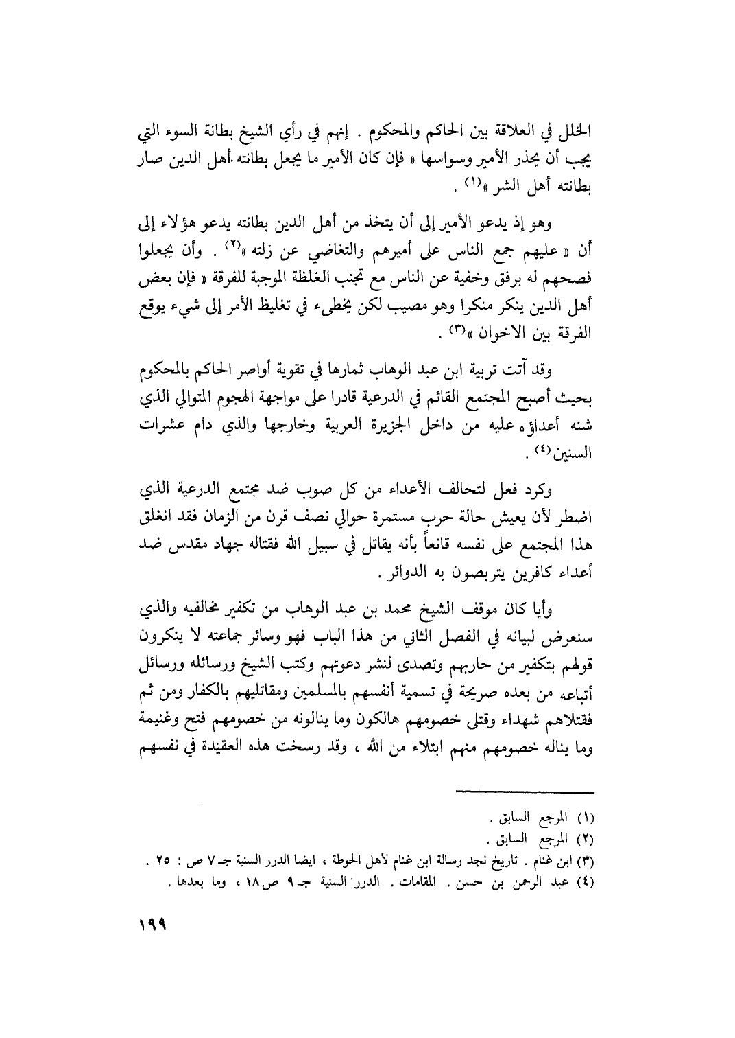 (4) عبد الرحمن بن حسن، المقامات، الدرر السنية جـ 9 ص 18 وما بعدها