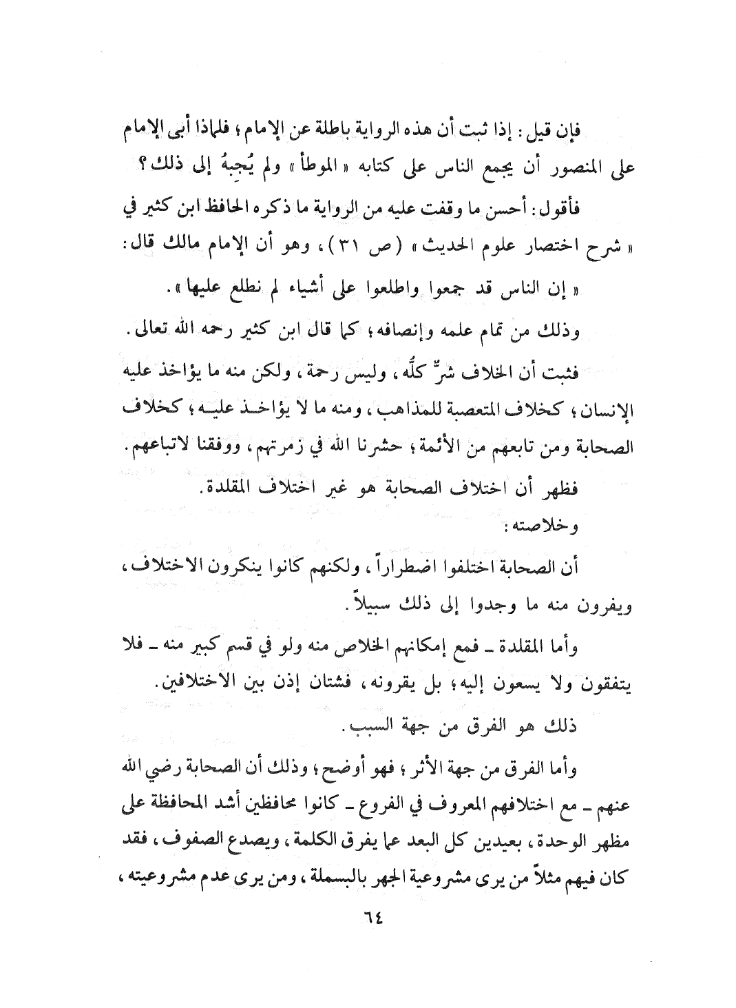فثبت أن الخلاف شر كله وليس رحمة ولكن منه ما يؤاخذ عليه الإنسان كخلاف المتعصبة للمذاهب ومنه ما لا يؤاخذ عليه كخلاف الصحابة ومن تابعهم من الأئمة حشرنا الله في زمرتهم ووفقنا لاتباعهم