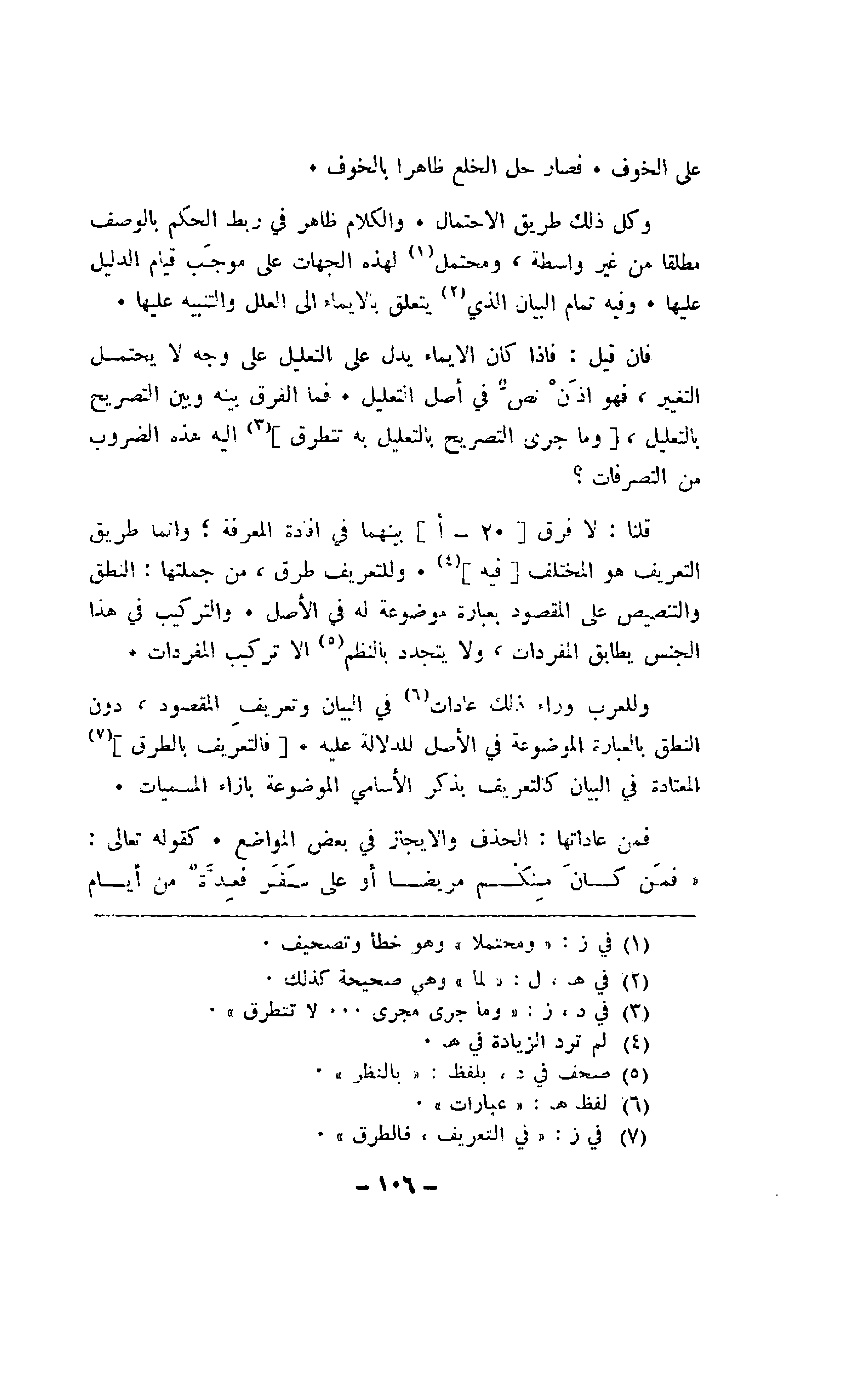وللعرب وراء ذلك عادات في البيان وتعريف المقصود، دون التعلق بالعبارة الموضوعة في الأصل للدلالة عليه. [فالتعريف بالطرق] المعتادة في البيان كالتعريف بذكر الأسامي الموضوعة بإزاء المسميات.