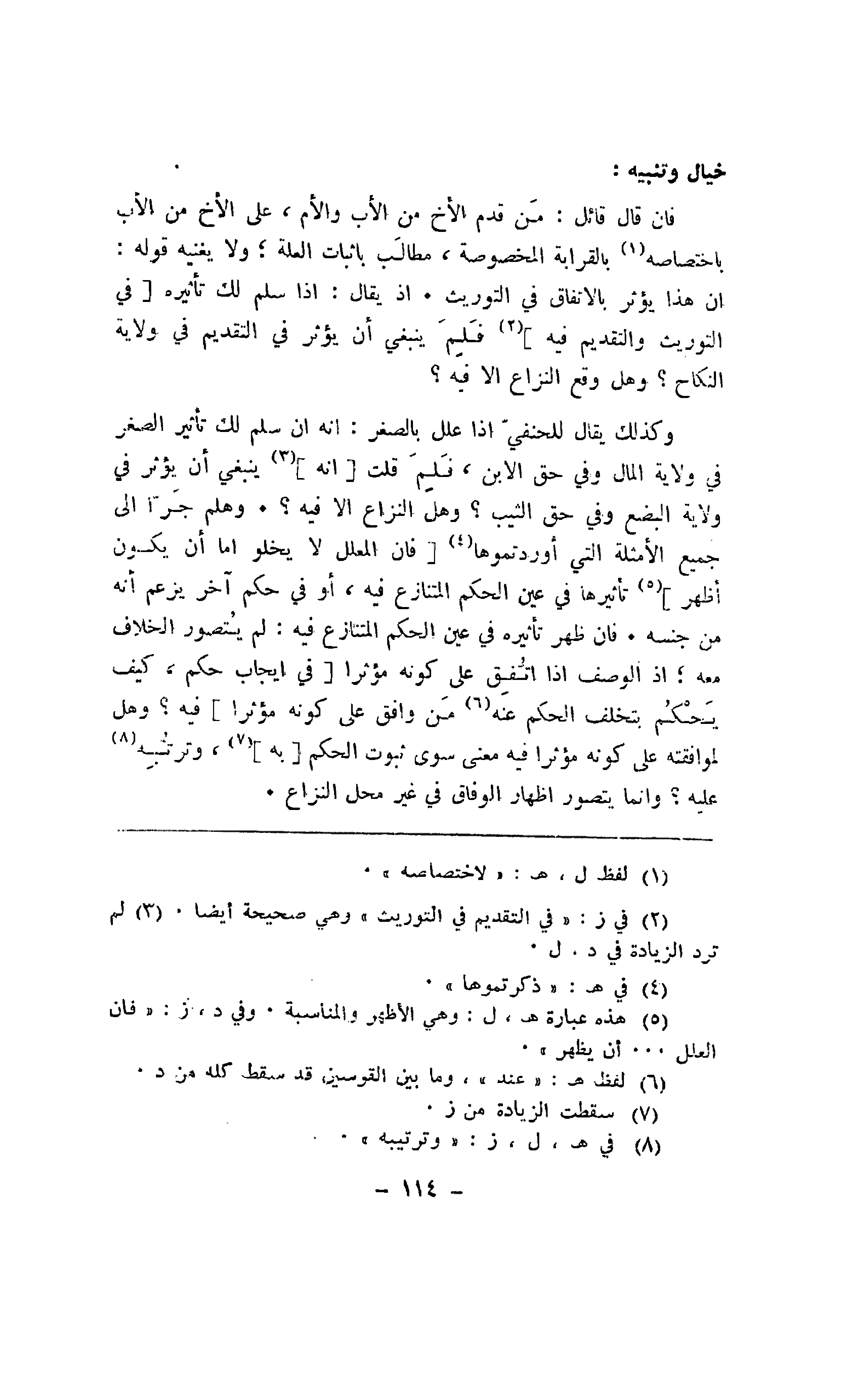 فإن قال قائل: من قدم الأخ من الأب والأم، على الأخ من الأب باختصاصه بالقرابة المخصوصة، مطالب بإثبات العلة؛ ولا يغنيه قوله: إن هذا يؤثر بالاتفاق في التوريث. إذ يقال: إذا سلم لك تأثيره [في التوريث والتقديم فيه] فلم ينبغي أن يؤثر في التقديم في ولاية النكاح؟ وهل وقع النزاع إلا فيه؟