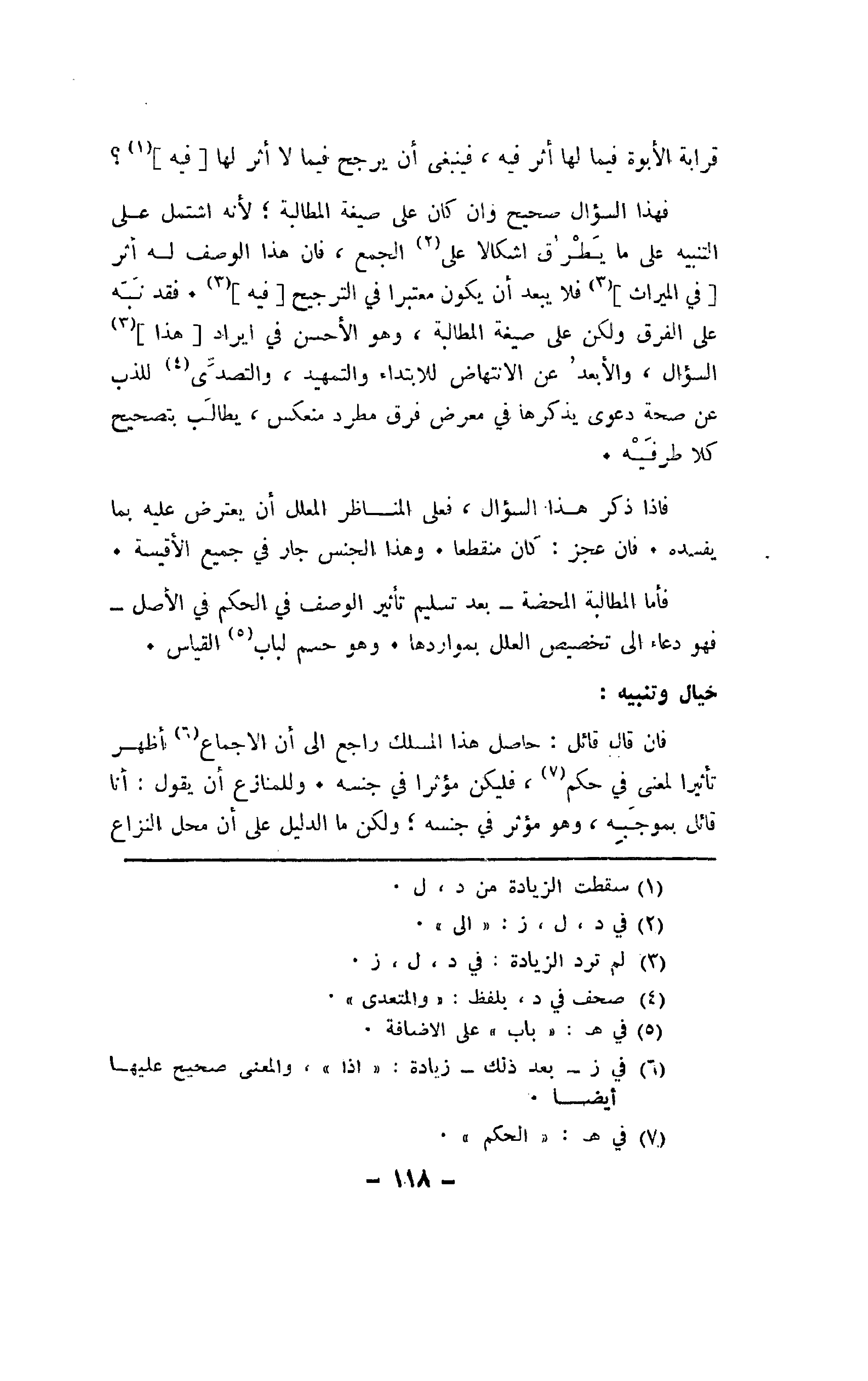 فأما المطالبة المحضة -بعد تسليم تأثير الوصف في الحكم في الأصل -فهو دعاء إلى تخصيص العلل بمواردها. وهو حسم لباب القياس.