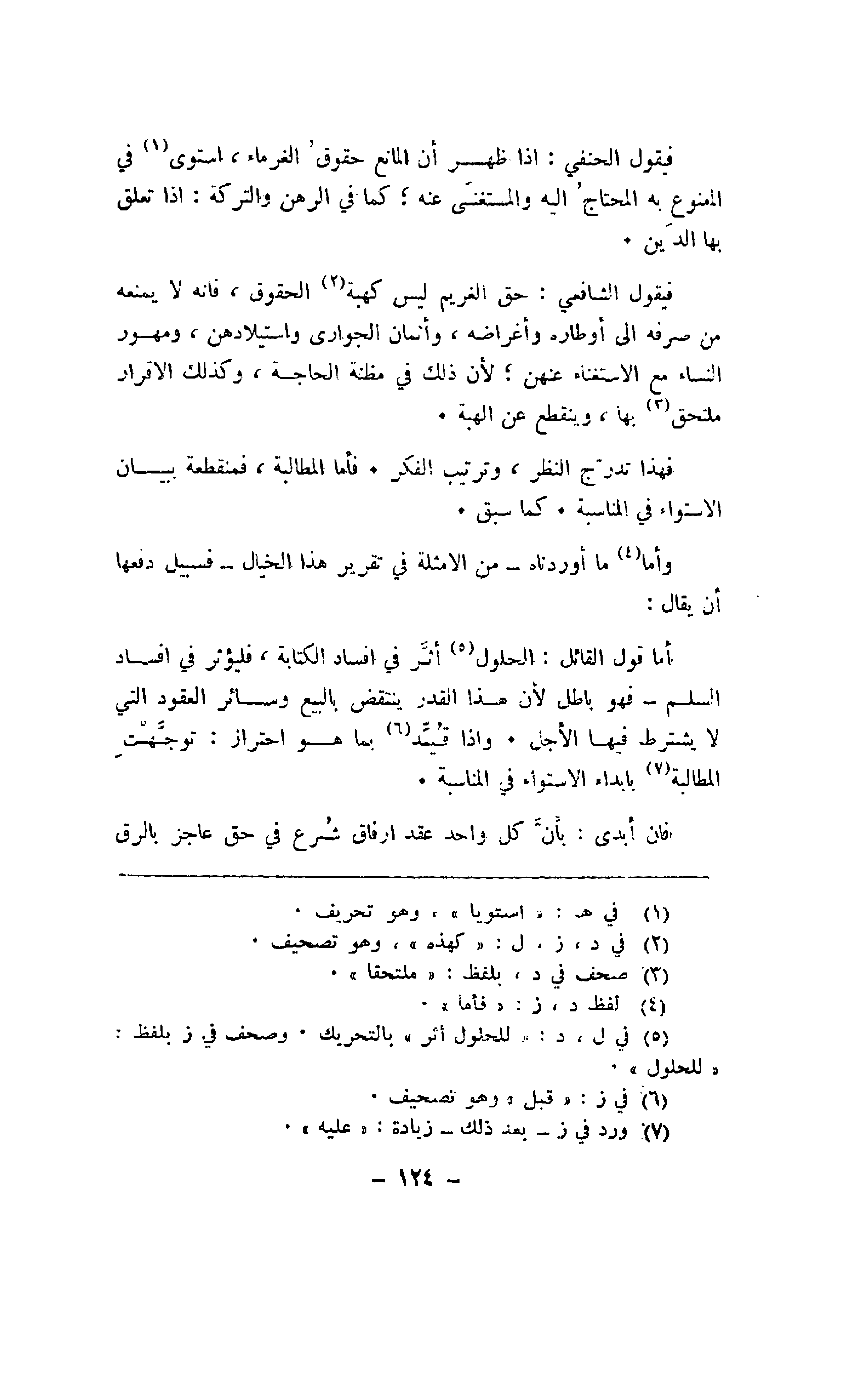 فيقول الحنفي: إذا ظهر أن المانع حقوق الغرماء، استوى في الممنوع به المحتاج إليه والمستغنى عنه؛ كما في الرهم والتركة: إذا تعلق بها الدين.