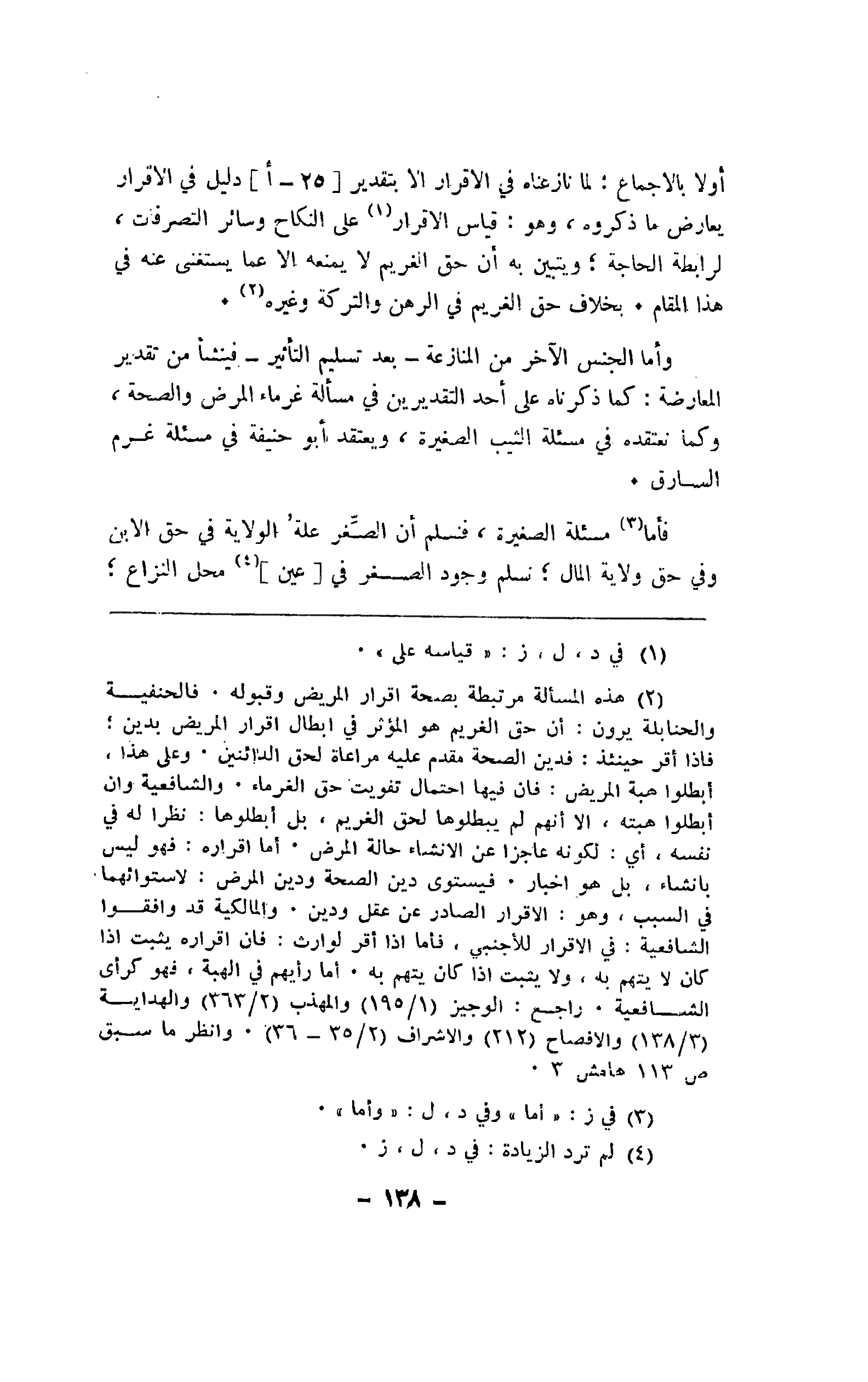 أولا بالإجماع: لما نازعناه رفي الإقرار إلا بتقدير [25 - أ] دليل في الإقرار يعارض ما ذكروه، وهو قياس الإقرار على النكاح وسائر التصرفات، لرابطة الحاجة؛ ويتبين به أن حق الغريم لا يمنعه إلا عما يستغني عنه في هذا المقام. بخلاف حق الغريم في الرهن والتركة وغيره.