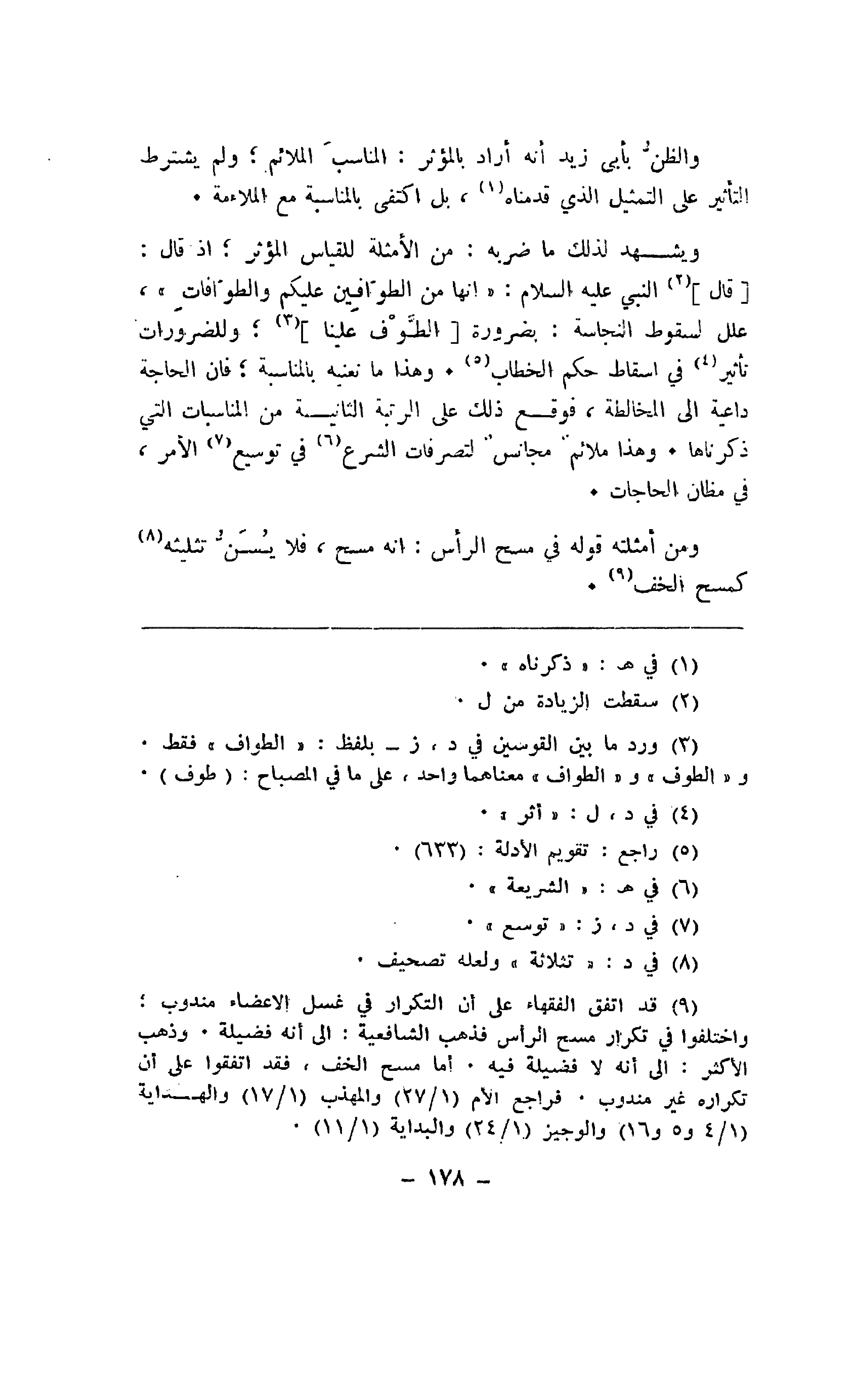 ومن أمثلة قوله في مسح الرأس: أنه مسح، فلا يسن تثليثه كمسح الخف.