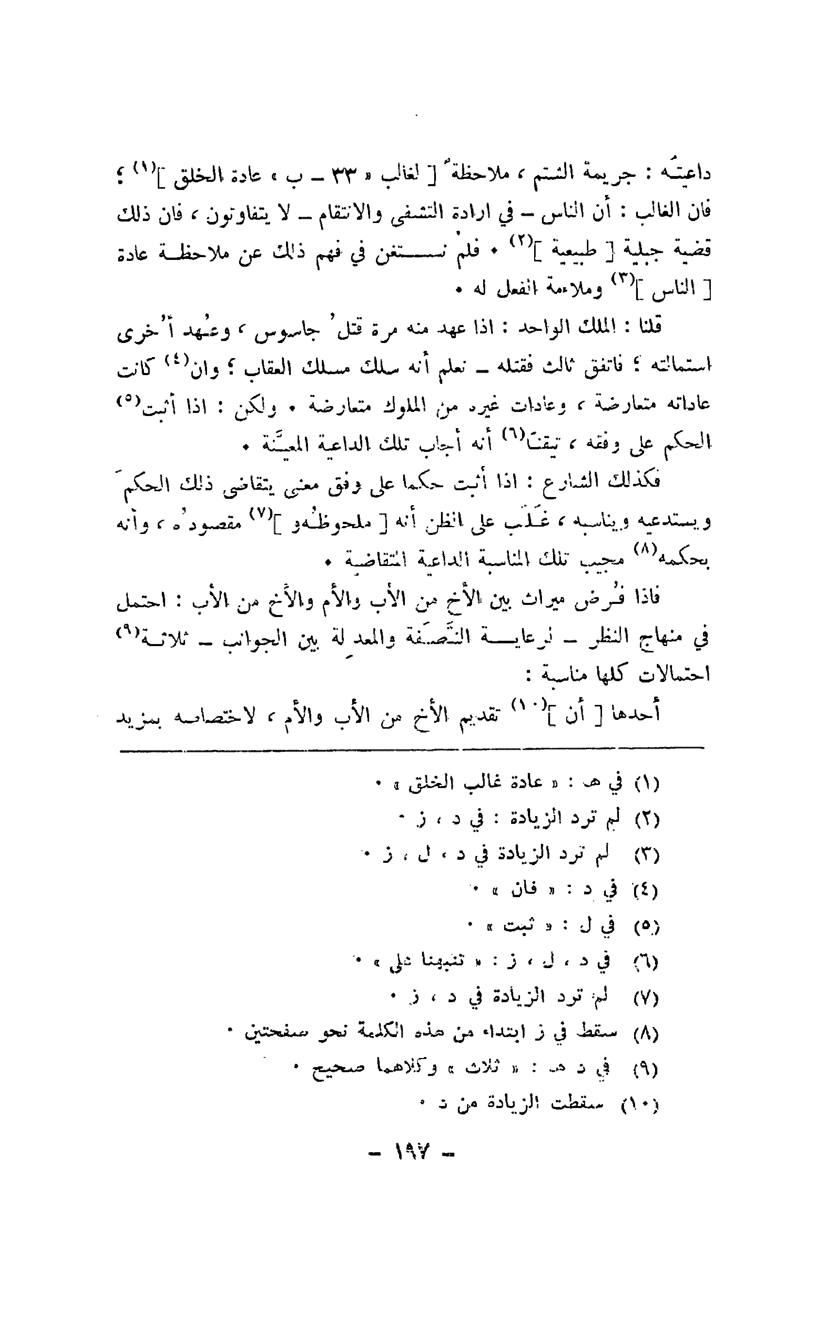 داعيته: جريمة الشتم، ملاحظة [لغالب ((33 - ب)) عادة الخلق]؛ فإن الغالب: أن الناس -في إرادة التشفي والانتقام -لا يتفاوتون، فإن ذلك قضية جبلية [طبيعية]. فلم نستغن في فهم ذلك عن ملاحظة عادة [الناس] وملاءمة الفعل له.