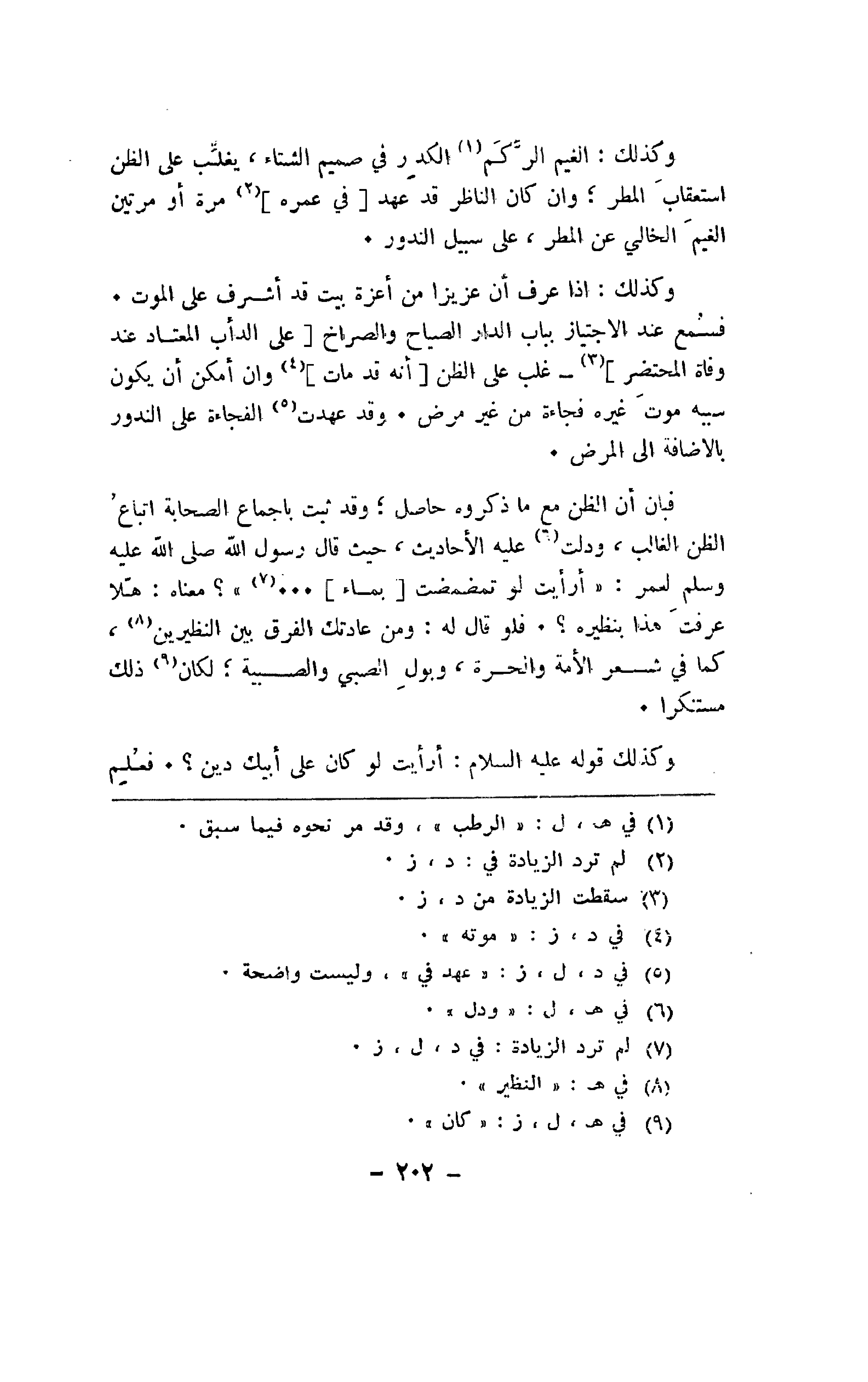 وكذلك: الغيم الركم الكدر في صميم الشتاء، يغلب على الظن استعقاب المطر؛ وإن كان الناظر قد عهد [في عمره] مرة أو مرتين الغيم الخالي عن المطر، على سبيل الندور.