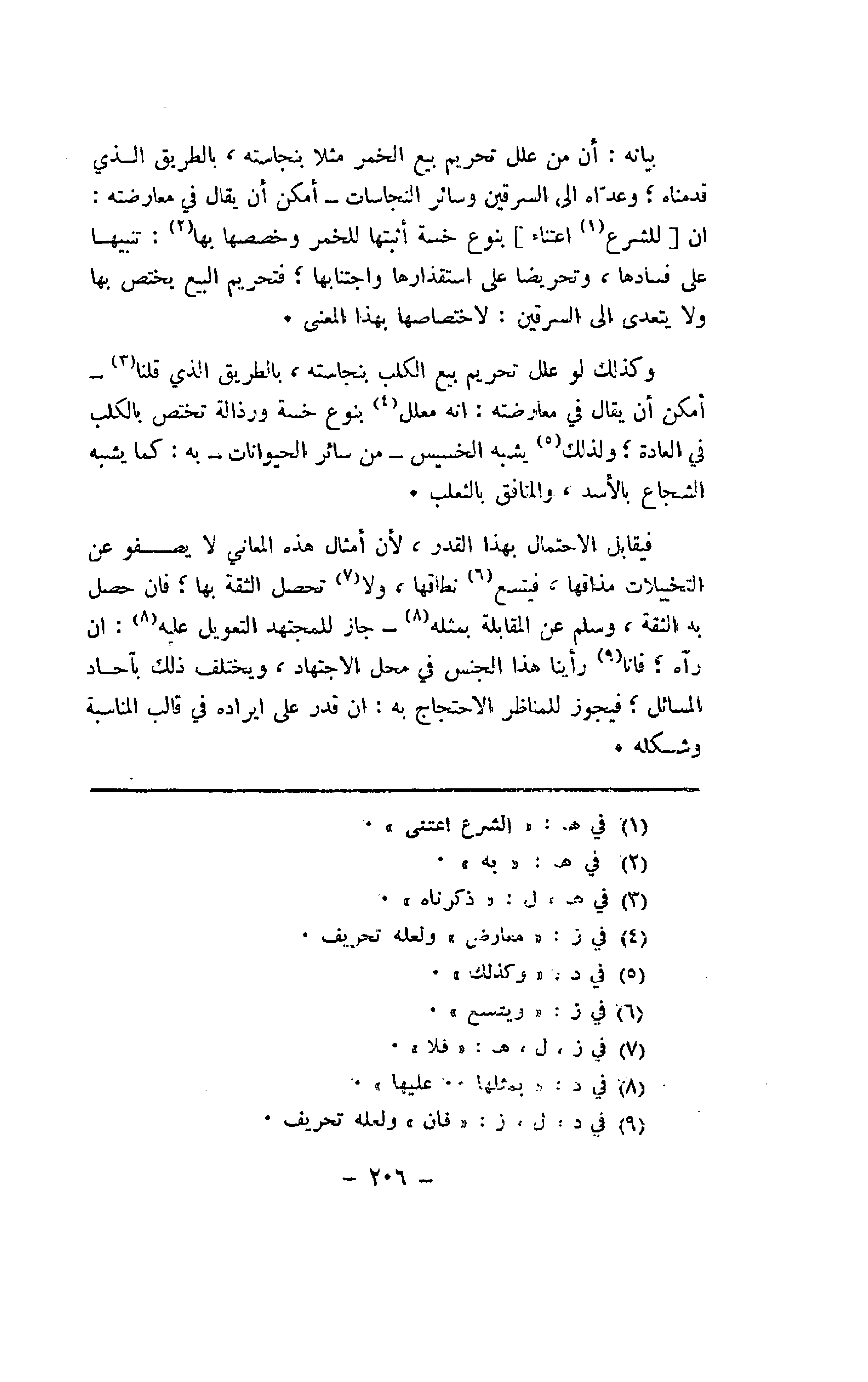 وكذلك لو علل تحريم بيع الكلب بنجاسته، بالطريق الذي قلنا - أمكن أن يقال في معارضته: أنه معلل بنوع خسة ورذالة تختص بالكلب في العادة؛ ولذلك يشبه الخسيس - من سائر الحيوانات - به: كما يشبه الشجاع بالأسد، والمنافق بالثعلب.