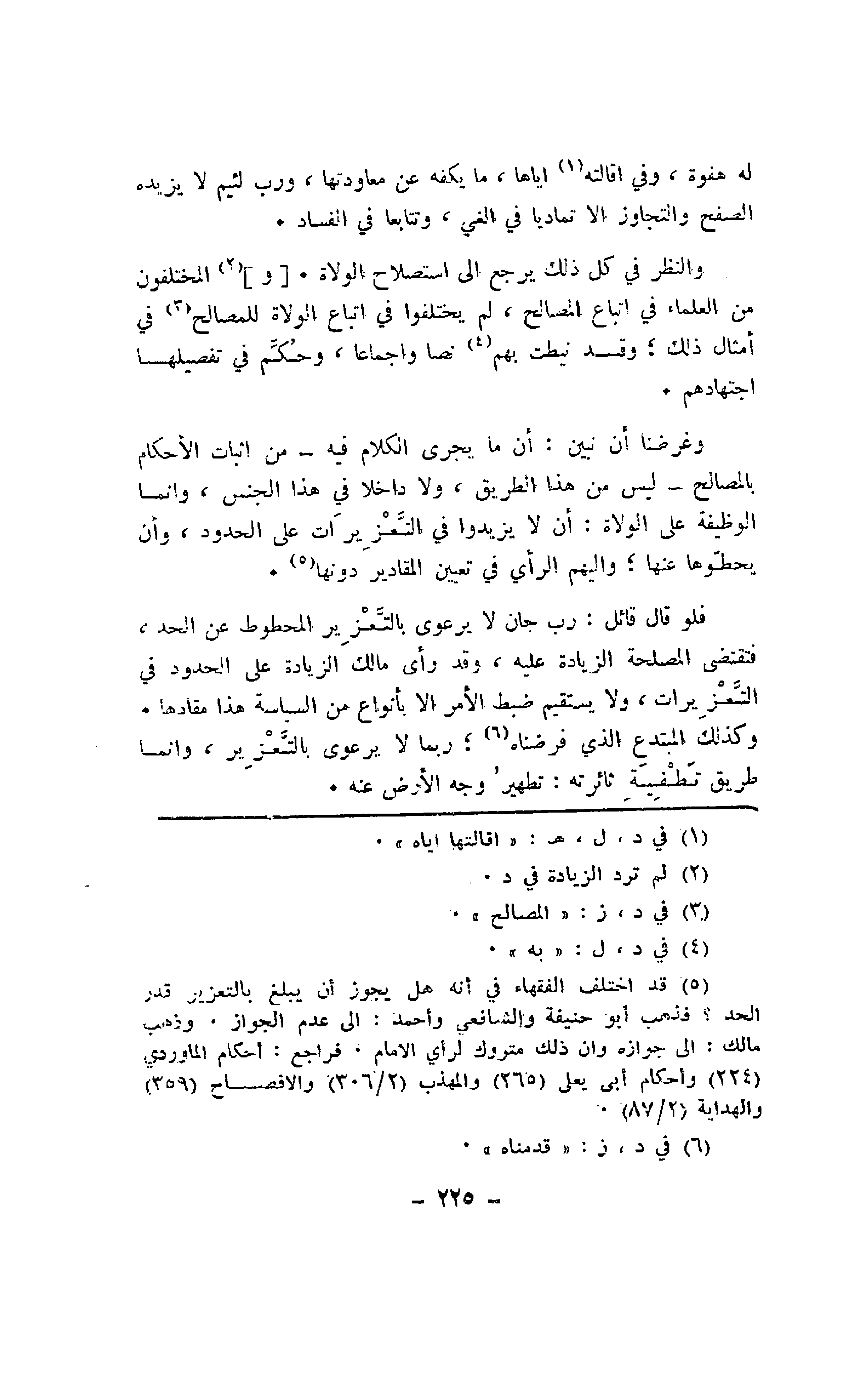 وغرضنا أن نبين: أن ما يجري الكلام فيه - من إثبات الأحكام بالمصالح - ليس من هذا الطريق، ولا داخلا في هذا الجنس، وإنما الوظيفة على الولاة: أن لا يزيدوا في التعزيرات على الحدود، وأن يحطوها عنها؛ وإليهم الرأي في تعيين المقادير دونها.