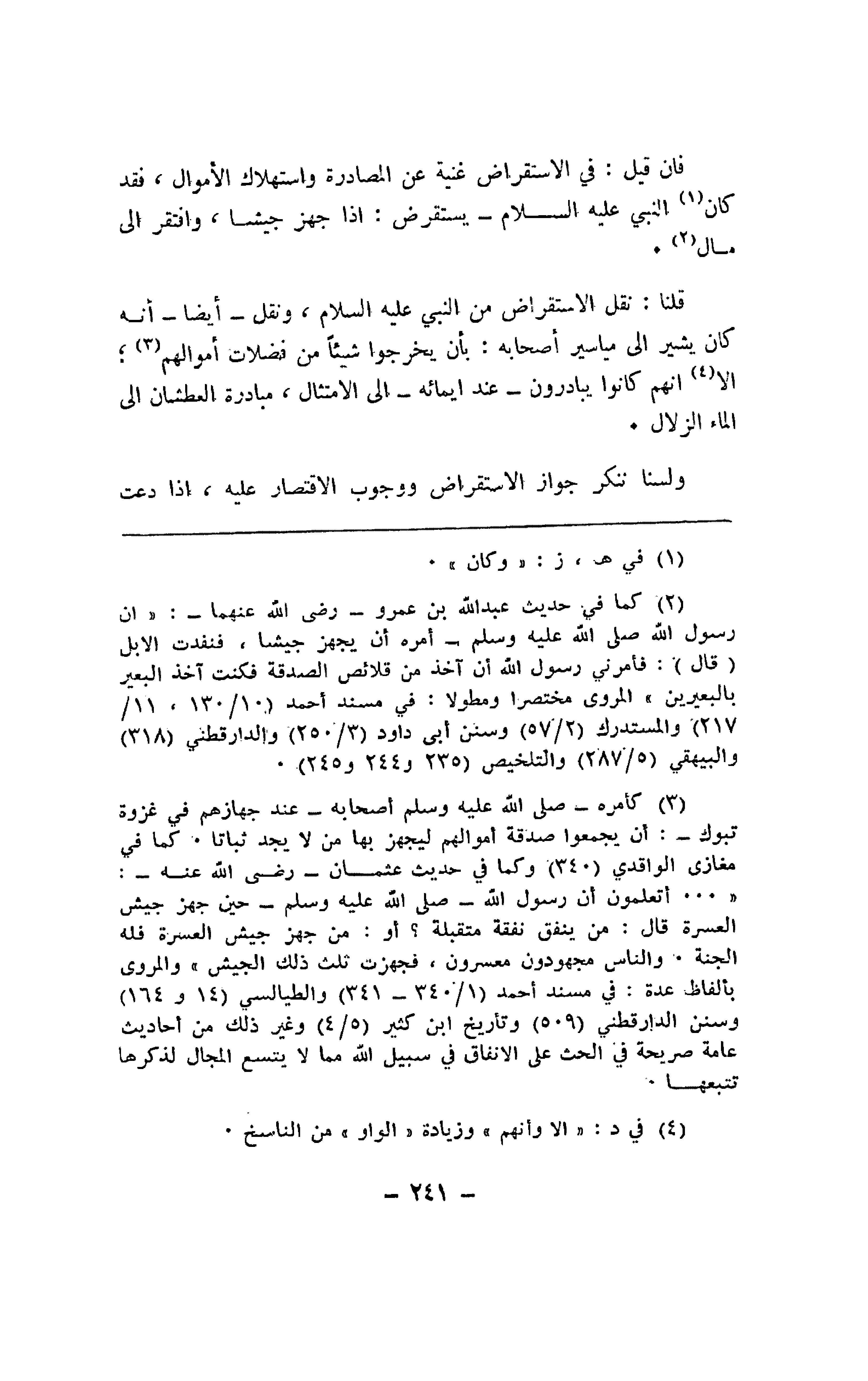 قلنا: نقل الاستقراض من النبي عليه السلام، ونقل - أيضا - أنه كان يشير إلى مياسير أصحابه: بأن يخرجوا شيئًا من فضلات أموالهم؛ إلا أنهم كانوا يبادرون - عند إيمائه - إلى الامتثال، مبادرة العطشان إلى الماء الزلال.
