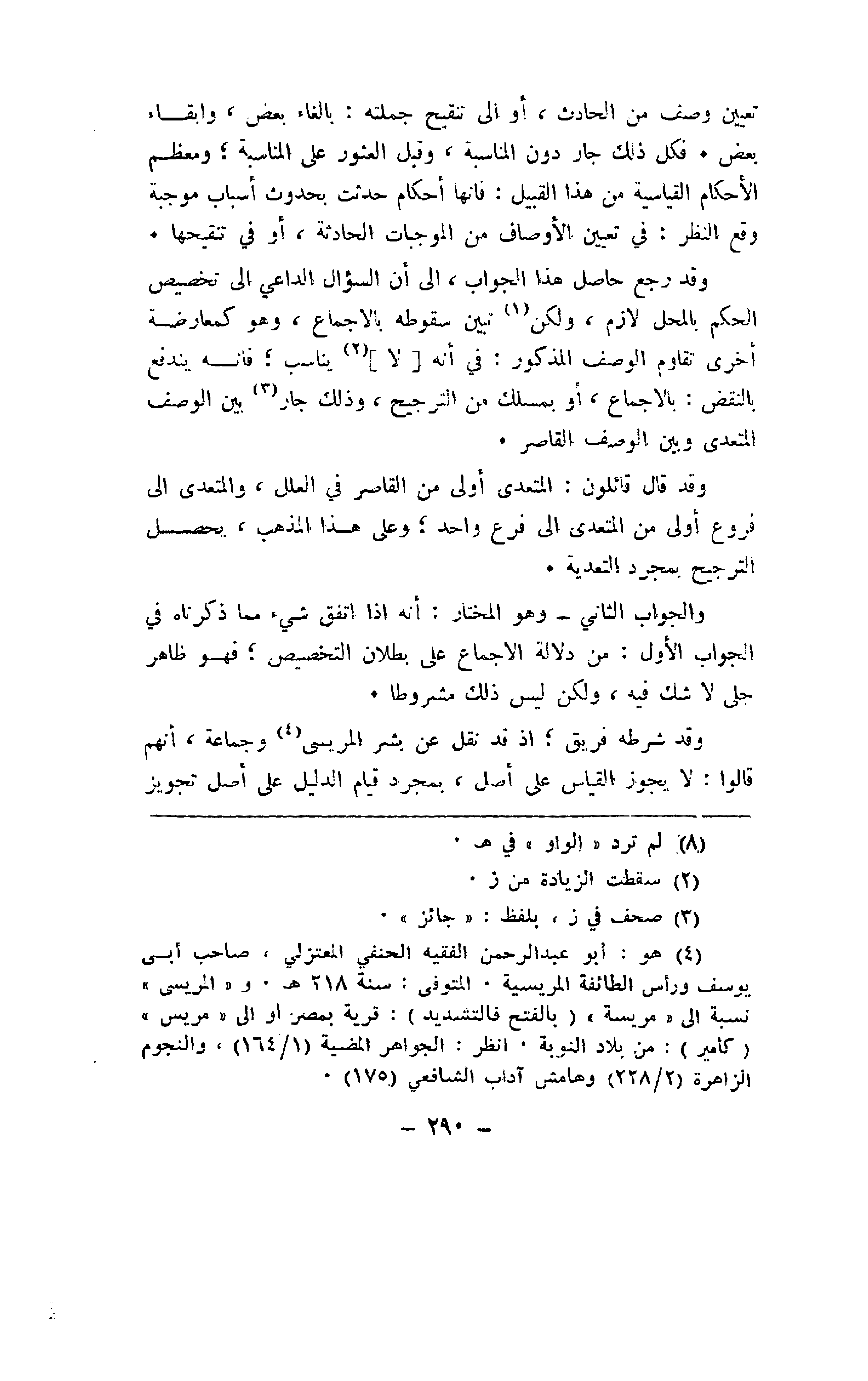 تعيين وصف من الحادث، أو إلى تنقيح جملته: بإلغاء بعض، وإبقاء بعض. فكل ذلك جار دون المناسبة، وقبل العثور على المناسبة؛ ومعظم الأحكام القياسية من هذا القبيل: فإنها أحكام حدثت بحدوث أسباب موجبة وقع النظر: في تعيين الأوصاف من الموجبات الحادثة، أو في تنقيحها.