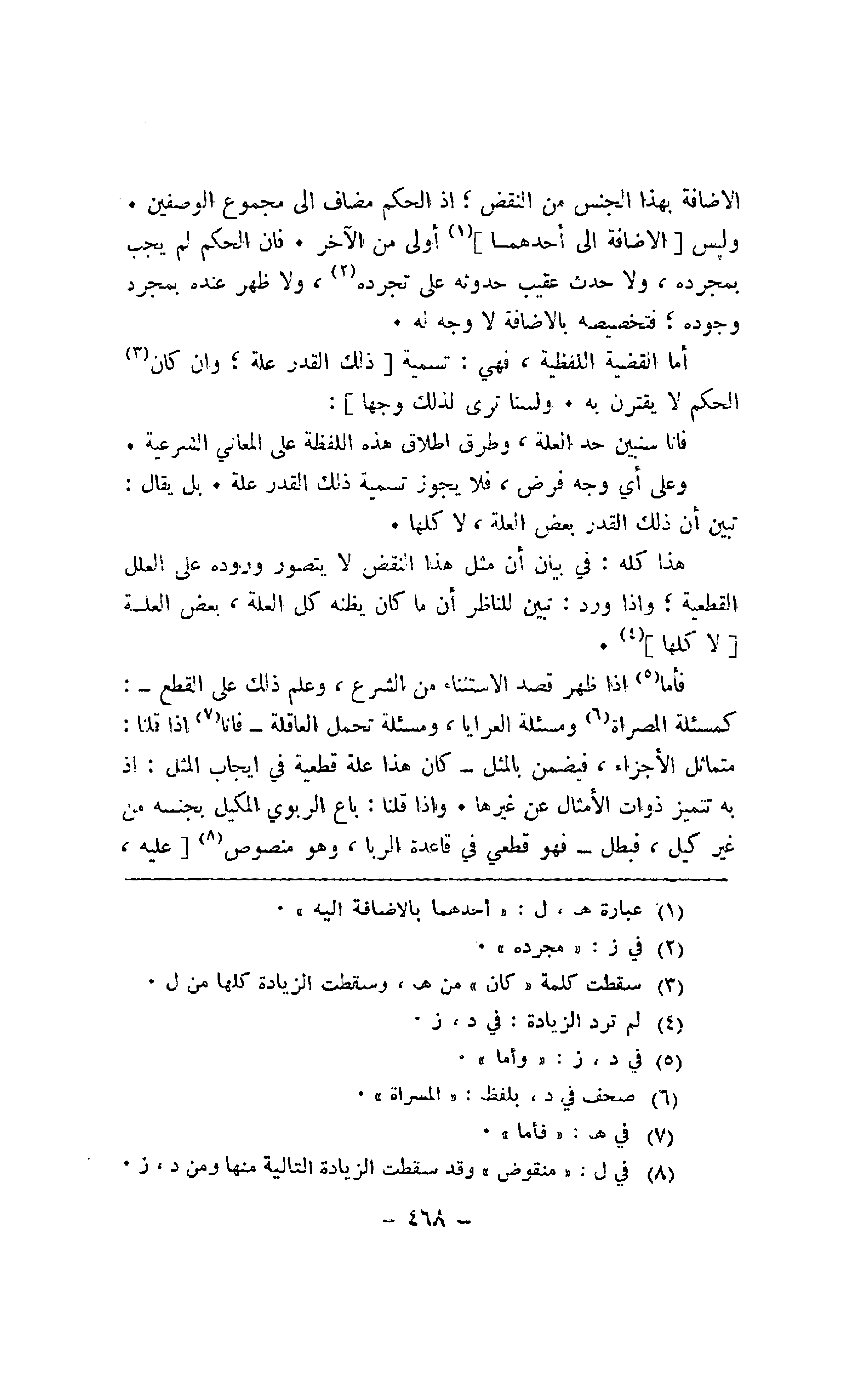 هذا كله: في بيان أن مثل هذا النقض لا يتصور وروده على العلل القطعية؛ وإذا ورد: تبين للناظر أن ما كان يظنه كل العلة، بعض العلة [لا كلها].