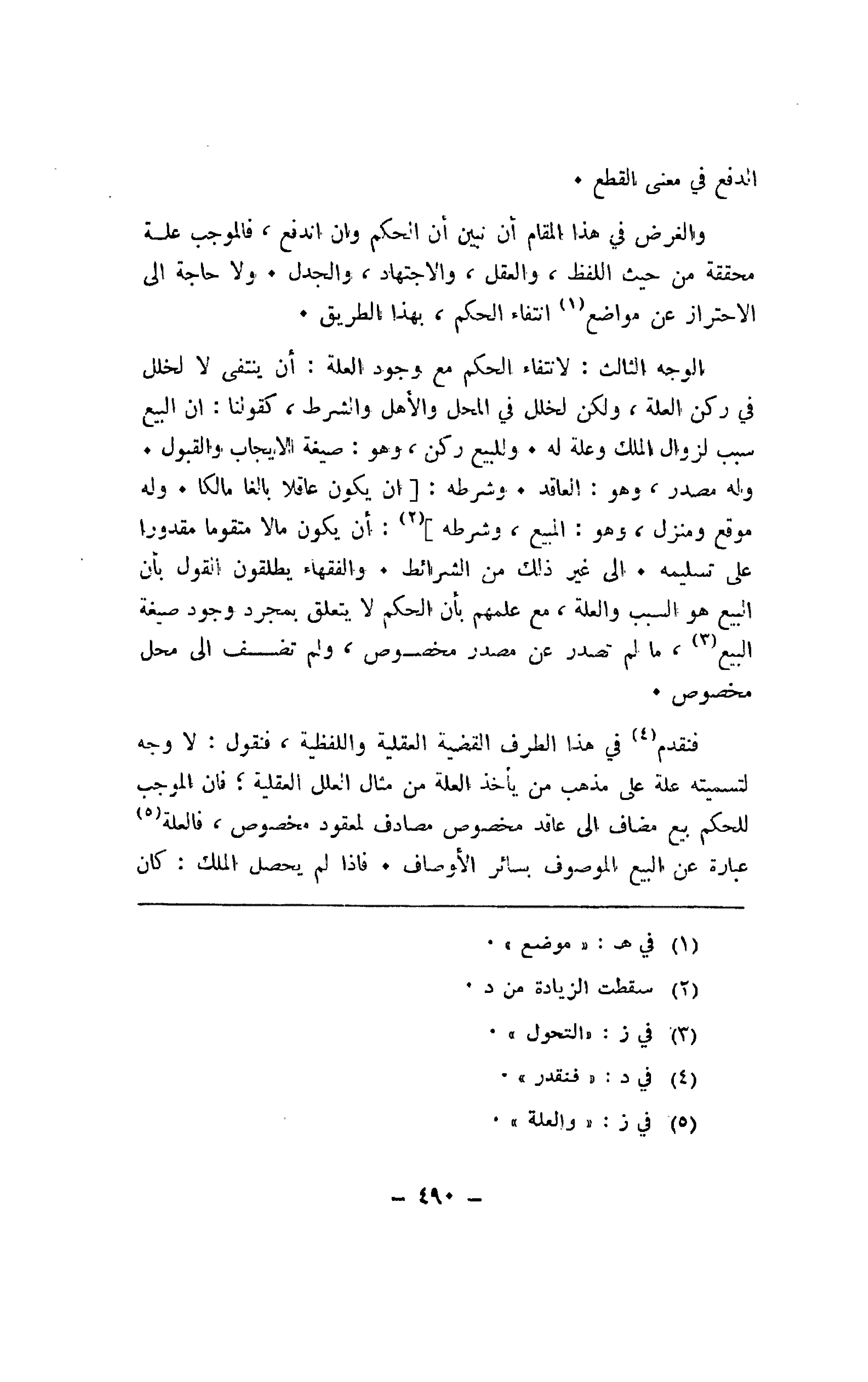 والغرض في هذا المقام أن نبين أن الحكم وإن اندفع، فالموجب علة محققة من حيث اللفظ، والعقل، والاجتهاد، والجدل. ولا حاجة إلى الاحتراز عن مواضع انتفاء الحكم، بهذا الطريق.