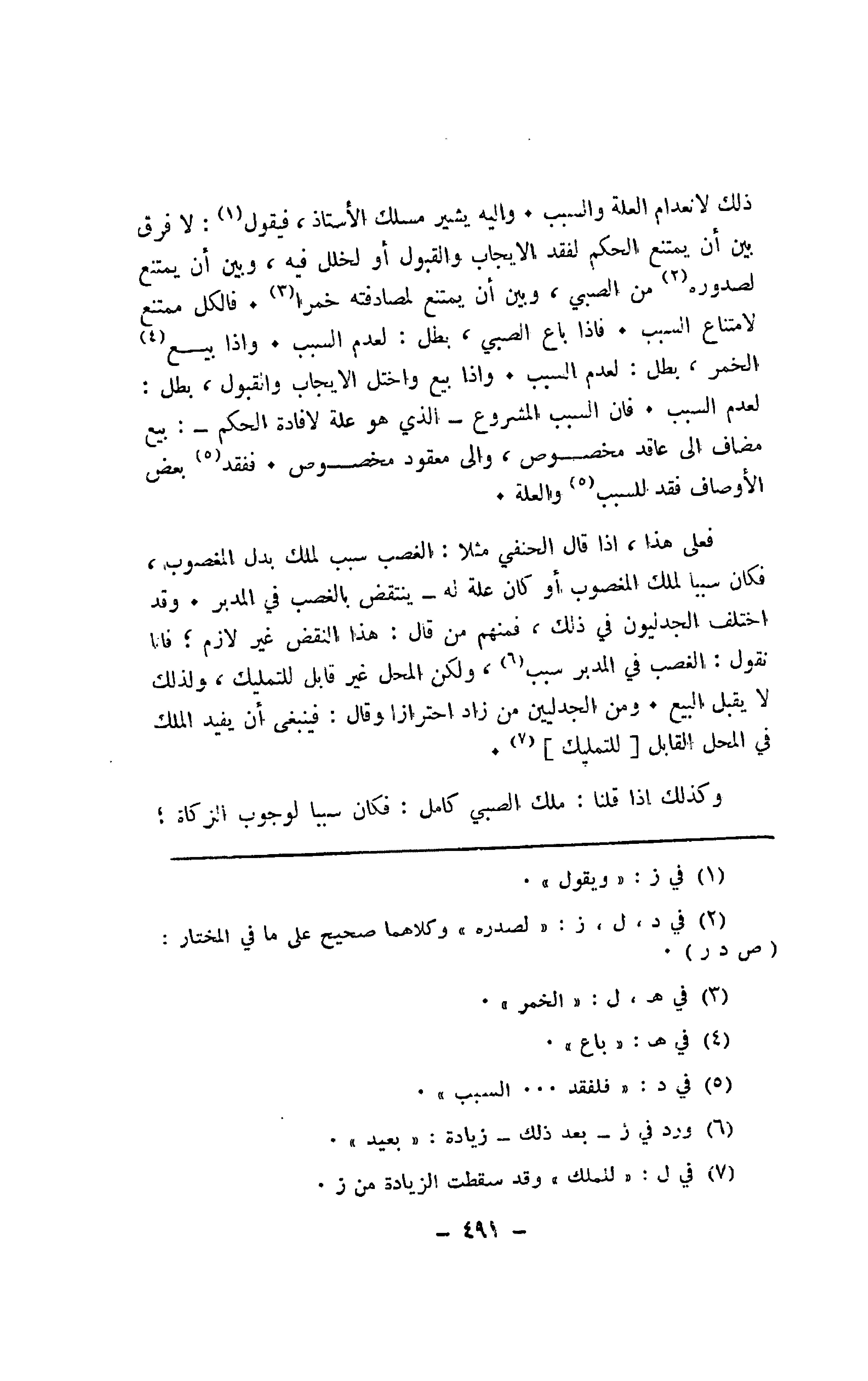 فعلى هذا، إذا قال الحنفي مثلا: الغصب سبب لملك بدل المغصوب، فكان سببا لملك المغصوب أو كان علة له -ينتقض بالغصب في المدبر. وقد اختلف الجدليون في ذلك، فمنهم من قال: هذا النقض غير لازم؛ فإنا نقول: الغصب في المدبر سبب، ولكن المحل غير قابل للتمليك، ولذلك لا يقبل البيع. ومن الجدليين من زاد احترازا وقال: فينبغي أن يفيد الملك في المحل القابل [للتمليك].