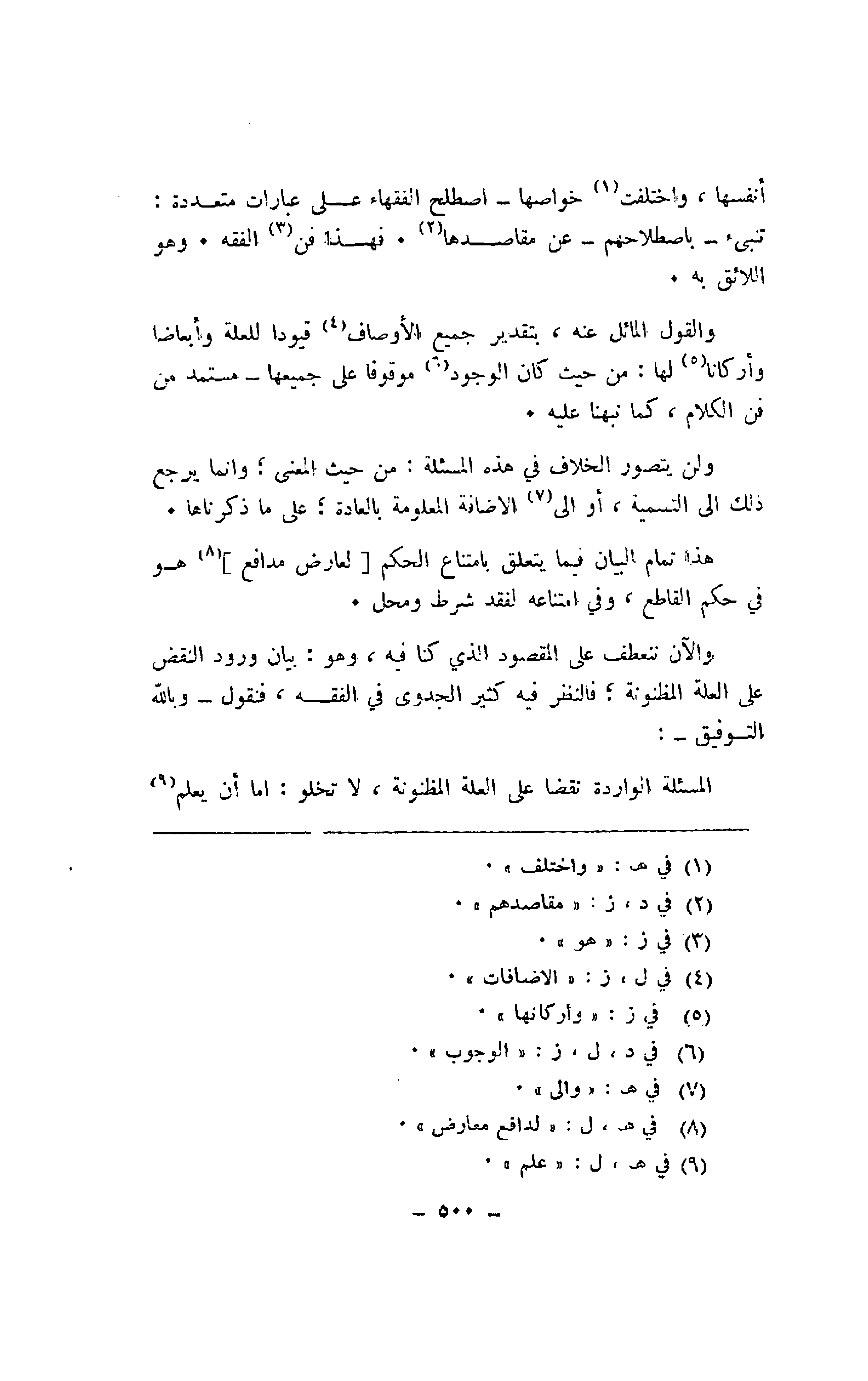 والقول المائل عنه، بتقدير جميع الأوصاف قيودا للعلة وأبعاضا وأركانا لها: من حيث كان الوجود موقوفا على جميعها -مستمد من فن الكلام، كما نبهنا عليه.