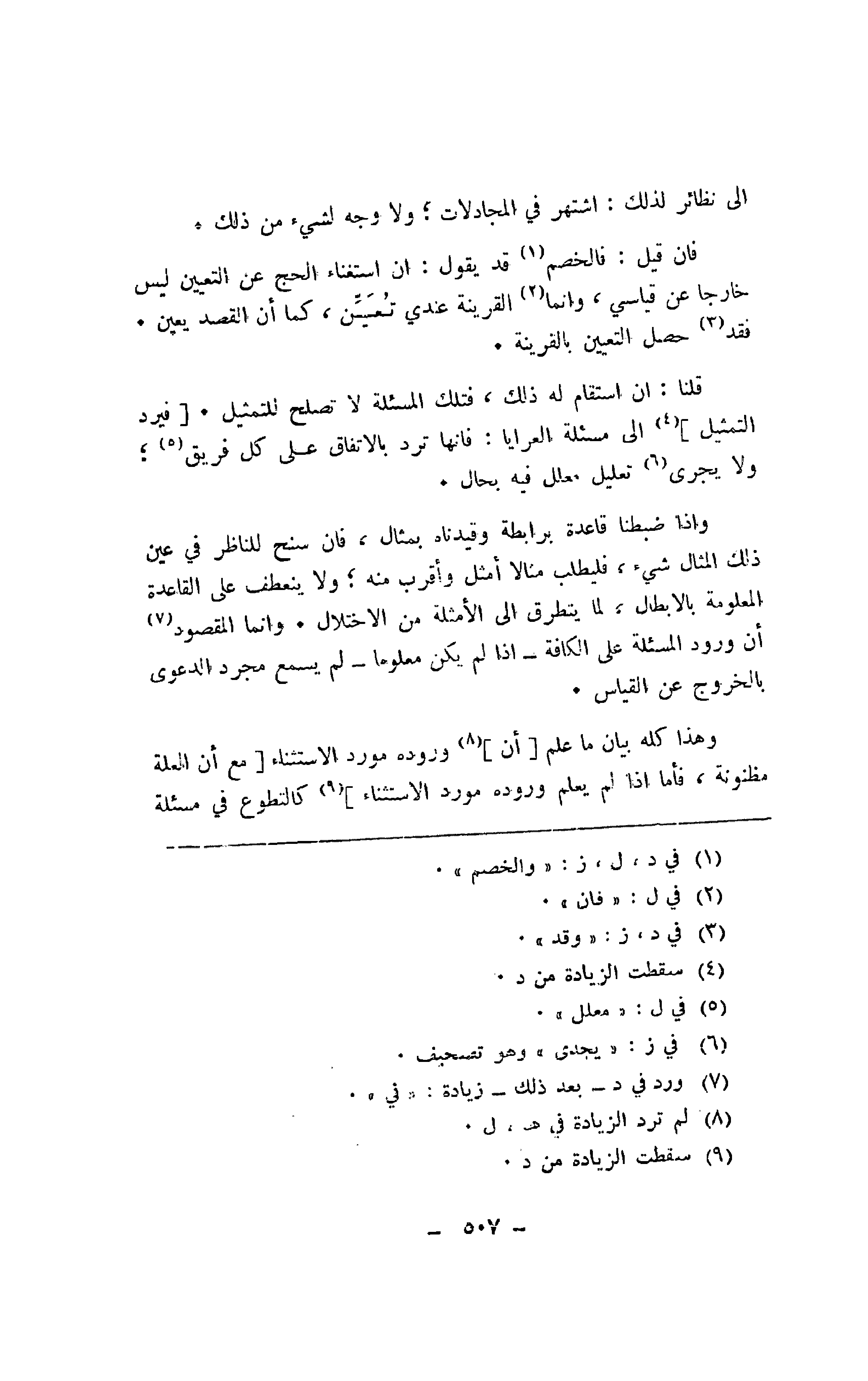 وإذا ضبطنا قاعدة برابطة وقيدناه بمثال، فإن سنح للناظر في عين ذلك المثال شيء، فليطلب مثالا أمثل وأقرب منه؛ ولا ينعطف على القاعدة المعلومة بالإبطال، لما يتطرق إلى الأمثلة من الاختلال. وإنما المقصود أن ورود المسئلة على الكافة -إذا لم يكن معلوما -لم يسمع مجرد الدعوى بالخروج عن القياس.